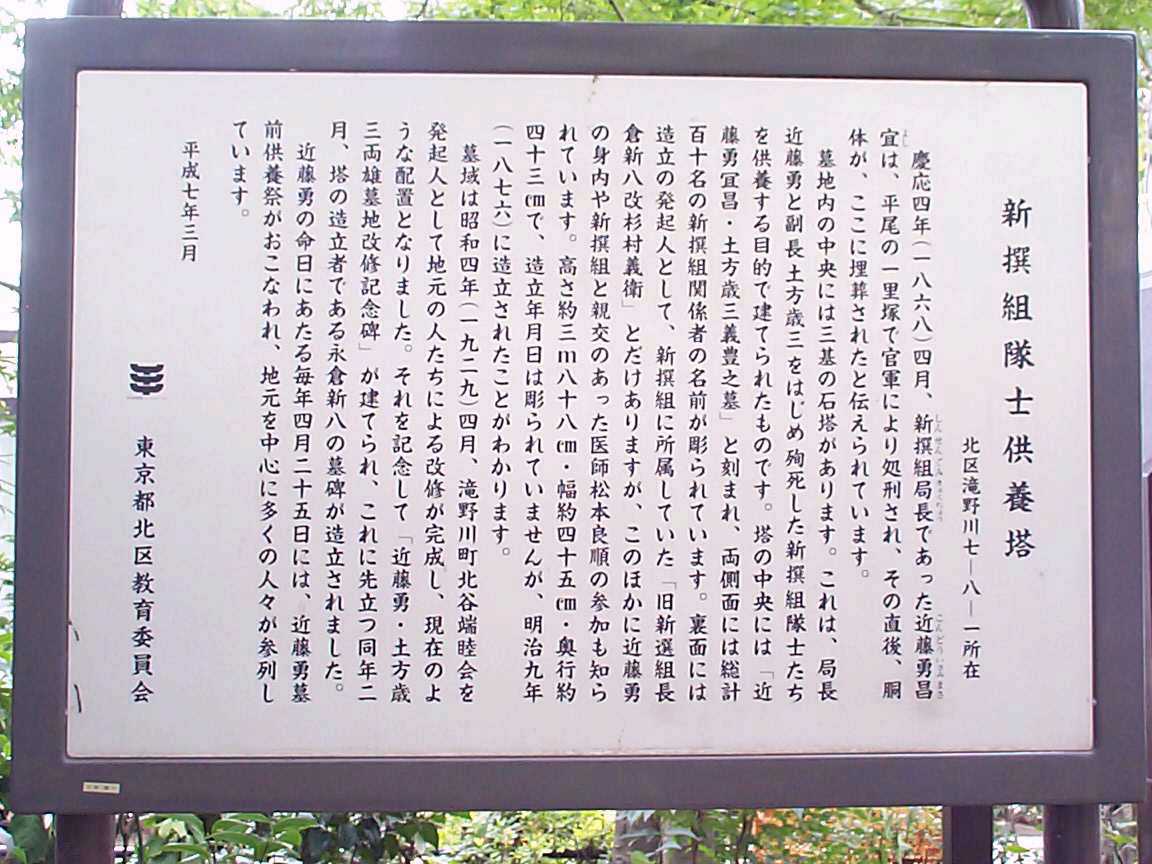 『転結』の「新撰組・近藤勇墓所」の立て看板が目に入った。