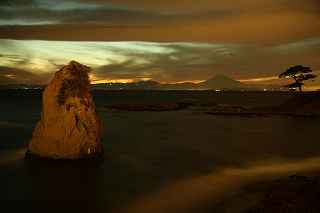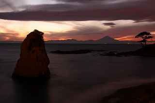 | 2011年11月27日の16:46〜18:04で撮影。 年2回、ここ立石公園からのダイヤモンド富士はカメラ仲間にも有名で有る。 しかし、別に太陽が富士山の上に有ろうと無かろうと、なぜかこの場所には惹かれるものが有る。 夕焼けを期待し、トワイライトを捕え、灯かりの燈り始めをカメラに収め、暗闇の水銀灯の光を待つ・・・・その時々の移り変わりを愉しむ事が『夕暮れの撮影』に満足感を生みます。 場所・・・三浦半島・・・横須賀市秋谷 ダイヤモンド富士・・・4月中旬(4/14前後)と、8月下旬(8/29前後)ともに18時頃です。 |