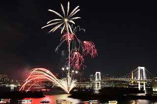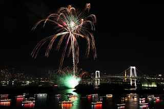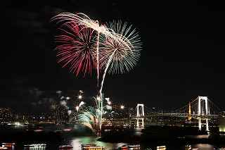 | まさかの復活 !! 10月も終わろうといしていた時、昨年中止になっていたお台場レインボー花火が12月の3日、10日,17日,24日の4回、復活したニュースが入った。 仕事を早目に切り上げ、17日、JR東海道線とゆりかもめでお台場まで足を運んだ。 2回目となる今回は、「アクアシティー6階」から、レインボーブリッジと花火を組み合わせての撮影を行った。 |