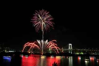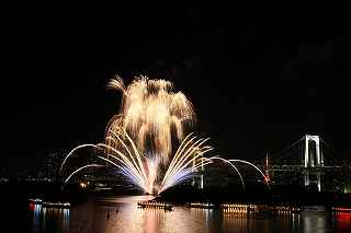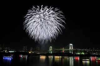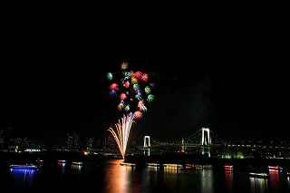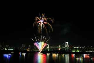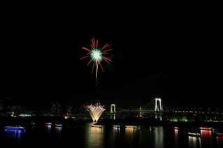 | まさかの復活 !! 10月も終わろうといしていた時、昨年中止になっていたお台場レインボー花火が12月の3日、10日,17日,24日の4回、復活したニュースが入った。 仕事を早目に切り上げ、24日、JR東海道線とゆりかもめでお台場まで足を運んだ。 過去2回、現場に足を運んだ事により、打ち上がった花火の高低差も把握できる様になり、屋形船と、レインボーブリッジとのコラボレーションも構図的に上手く収める事ができる様になった。 |