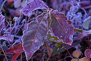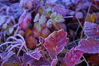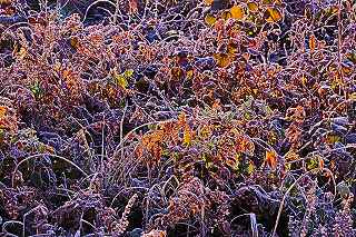 | 15.ふと地面に目を移すと・・・霜だー | 16.霜と紅葉のクローズアップ |