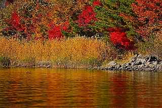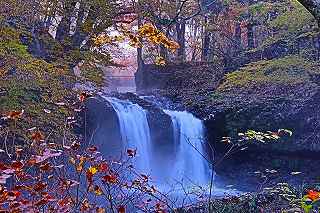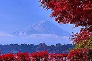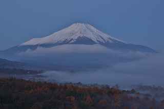 | 紅葉シーズン中で、雨の翌日、私はほぼ毎年、山中湖・河口湖方面を5時間ほど掛けて撮影に出掛けます。 ルートはパノラマ台→平野から旭日丘→花の都公園→鐘山の滝→散策公園付近→湖北ビューライン→紅葉回廊。 パノラマ台ではっきりと見えていた富士山も、山中湖から急速に湧き上がってきた霧のために、次第に見えなくなったので、次の撮影場所に移動です。 鐘山の滝付近の紅葉のピークは過ぎていましたが、朝日が昇った直後で、まわりの空気が冷たく、滝壺からの水蒸気で、幻想的な世界となっておりました。 市立看護専門学校前から北富士演習場へ向う道の左右は、素晴らしい紅葉が続きます。 中でも、白樺の白い幹と紅葉の赤い葉のコントラストは、絵になります。 寒いから観られる自然現象で、葉っぱを覆っている霜が、朝日に照らされて、煌めいていました。 溶けた霜がポタリ、ポタリと水滴となり、その都度微かな音まで・・・・・神秘的な一時に、寒さを忘れる瞬間でした。 ふと、空を見上げると、富士山の姿がはっきりと見えています。 急いで、北富士演習場に向かい、白い綿帽子を被った富士山をカメラに収めました。 次ぎに向った「湖北ビューライン、大石公園先」は人気スポットでも有り、カメラマンは30人ほどいました。 今日のコースの最後は、「もみじ回廊」ですが、平日にもかかわらず、人出が多いです、紅葉は6〜8分で緑の葉もかなり残っていました。 最高の見頃は、次の土日あたりになるでしょうか。 撮影日:2012−11−13 山中湖・河口湖にて |