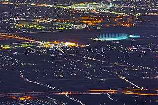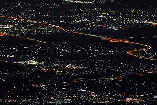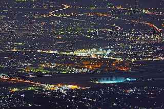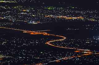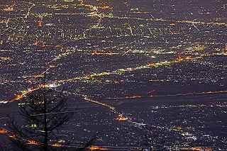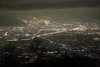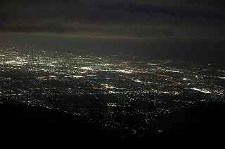 | 甘利山はツツジの群生地で有名です。 山頂付近の駐車場まで県道613号線を一気に駆け上る事が出来、標高1500メートル近くに達する。 ここは又、山梨県屈指の夜景ポイントでもあり、気象条件さえ良ければ、南東方向に富士山も見えるのだが、残念ながらこの日は雲が低く立ち込めていて、富士山を見ることは出来なかった。 話はガラッと変わりマニアックになります。 私の愛車は平成5年に購入したJZA80です。 当時280馬力の規制枠の中、FRではZ、セブン。MSにNSX。そして四駆のGT−R。etc Fun To Driveな車が揃っていた。 先日新しいポテンザに履き替えたので、皮剥きを兼ねて峠を攻める事にした。 甘利山公園線は丹沢のヤピツ峠を距離的に長くした、ヘアピンカーブと急勾配の続く全面舗装路。 道幅はそれ程狭くはなく、コーナーギリギリを攻めて走りたかったが季節がら道の両脇に落ち葉が厚く積もっているところもあり、それを踏んでの走行は少し危険。 途中、立派な角を持った鹿が道端にキョトンと立っていたり、番の狸が慌てて茂みに走り込んだり、挙げ句の果て頂上で待っていたのは10個程の光る目、子鹿の集団だった。 車を降りると例によって「熊出没注意の立て札」 3分程歩いて東屋に到着・・・・勿論誰もいない。 冷気が背中から霧となって眼下に流れていく。 一時間も居るとレンズフードに霜が降り、指先の感覚がなくなっていくのがわかる。 1500メートルからの夜景は高度的には高過ぎ、全てが小さい。 山から雲海も降り始めたので早めの撤収となった。 帰路のダウンヒルはエンジンブレーキを効かせて気持ち良く下る。新しいポテンザはFRの回頭性を存分に引き出し、狙ったラインをトレースする。途中すれちがったのはランクル一台のみ。12月からこの道も冬季閉鎖に入る。 夜景はイマイチだったが、気分は爽快! 撮影日:2012−11−25 山梨県韮崎市にて |