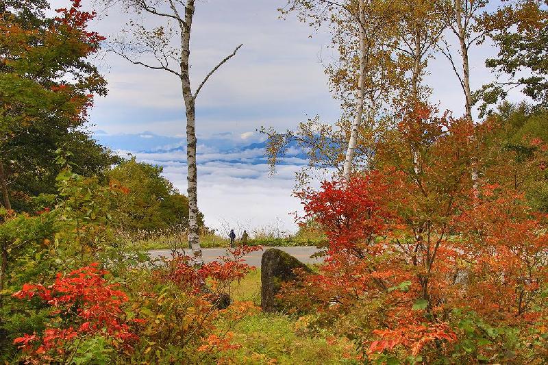 本来なら「丸池」を探索するつもりだったが、「一沼」の案内標識と「琵琶池」を案内する矢印が、近い位置に建てられていた。矢印の方向に道なりに下っていくと蓮池方向からの整備された道とぶつかり、木々の間から「琵琶池」が見えてくる。形が楽器の「琵琶」に似ていることからついた名前だそうだ。これも後で知ったのだが、志賀高原で最大の池は「大沼池」だそうだが、「琵琶池」は二番目に大きな池だと分かり唖然とした。と言うのも、周囲2300メートルもあるのだ。周囲は歩きやすいアスファルト舗装が殆どで、起伏も大したことはない。いい調子で歩き始めたのだが、ついつい、それなりに木々の紅葉がきれいなのに誘われて、気が付いてみると、すでに半分来ていた。スマホで位置確認すると一度車道に出てから再び湖畔を歩くコースだと分かった。しかし、ここで残念ながらカメラのバッテリーがなくなりそうで赤い点滅が始まっていた。「どうせ撮影できないのなら、歩きにくい山道を歩くより車道を歩いたほうがいいだろう?」と判断した。電池切れが要因で決断したことが完全な判断ミスだった。と言うのも、大きく迂回しなければ、「一沼」のPへはたどり着けない道だった。疲労困憊とはこのことを言うのか。R292に出ても、そこから車もエンジンをふかして上るほどの坂。さすがに途中途中休みながら坂を上がる。絶望感と自分のミスに腹が立った。が、しかし、前方に路駐の車数台を見たとき、一瞬だけそちらに関心が行き疲れが消えた。次の瞬間、ガードレール越しにスマホを構える人を数名確認。その方に目をやると、街全体を覆いつくした雲海が見えた。真っ白で分厚い雲海だった。そして、雲海の上にかすかに顔を出す「剣岳」〜「杓子岳」、一気に疲労がぶっ飛んでしまった。11時を過ぎるころ、雲海は徐々に薄くなり、昼頃には街並みが切れ切れに見えるようになってきた。道を間違えたことが思わぬ収穫となった。 |