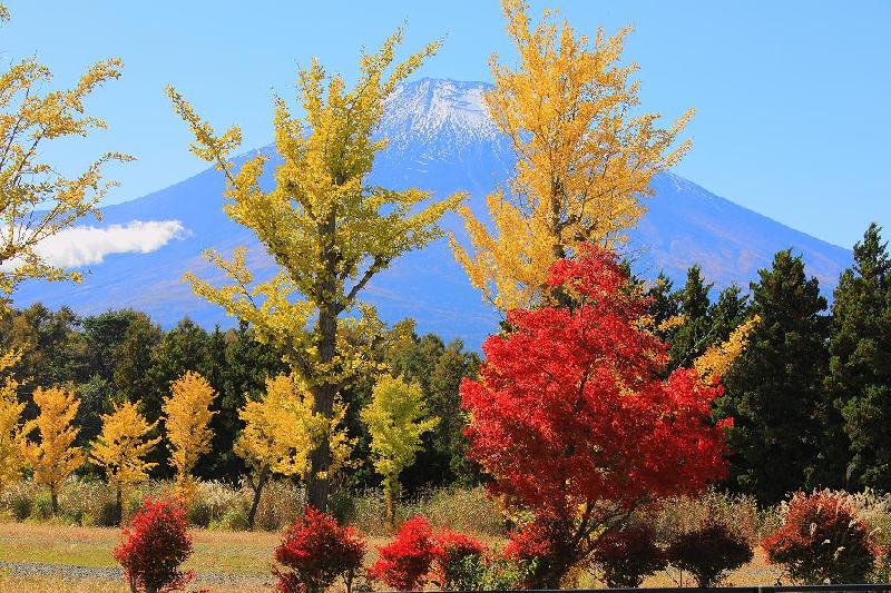 こうした「旭日ヶ丘」の賑わいに比べると、平野地区は静かなものだ。「交流プラザきらら」周辺は人もまばらで、きららのステージだけが大音響でうるさいだけ(失礼)。なんでも「ライブ配信中」との文字があり、次から次へと演奏者が交代でパフォーマンスを披露していた。それは結局ダイヤモンド富士が見られる16時を過ぎ、あたりが暗くなるまで続いた。だから、いつもならそのクライマックスを迎える時は、シャッター音がカシャカシャ鳴り響き、一種独特の緊張感と気分の高揚があるのだが、今日に限っては後ろで演奏される音楽で集中力に欠けていた。南東の風が15時くらいまで強めに吹き、次第に弱まったとはいえ、山中湖の湖面は波立ったままだった。雲も山頂付近に全くなく、すっぴんの富士。晴れたことだけが幸いだったが、条件からすると50パーセント程度か?相変わらず、相当数のカメラマンが、ずらりと並び、それを撮影するために新聞社まで来ていた。実際ダイヤモンド富士は、どなたが撮っても同じようなものではあっても、やはり条件がそろう時が少ないだけに、多くのカメラマンが足を運ぶのだろう。自分も今日撮った写真をプリントしてみて思ったことは、「以前に撮ったのとおんなじじゃあない?」と言う印象だった。むしろ、この日の収穫は「交流プラザきらら」横の臨時駐車場にも使われる空き地のドウダンつつじ、モミジそしてイチョウの紅葉(黄葉)、少し早いとはいえ富士山をバックにかなりいい感じのポイントだった。山中湖周遊サイクリングを楽しむ観光客が必ず歓声を上げ、自転車を下りてスマホ撮影をし、再びペダルに足をのせて走り去るのを何人も見た。