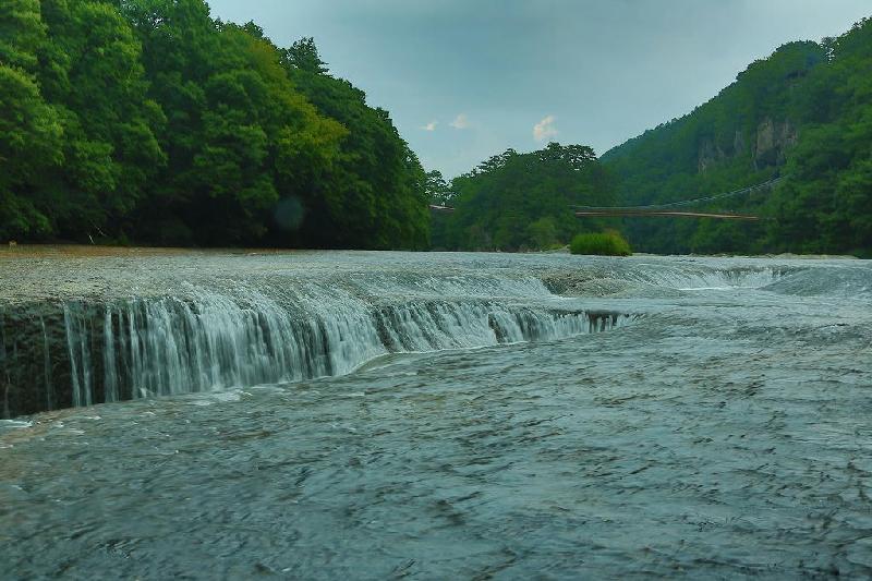 関越道沼田ICから帰るには、渋滞に巻き込まれる時間帯だったので、吹割の滝まで足を延ばした。近ちゃんギャラリーには2014年、小雨の降る夕方撮影したものを少しだけアップいたしましたが、その時は上流にある「浮島橋」「吹割橋」」を渡ることもせず帰ってしまった。今回は、滝近くの500円駐車場に車を入れ、上流の階段を一度下り再び上がって浮島橋へ。多くの観光客は、この二つの橋を渡ったところにある休憩所(トイレあり)から今来た道を戻っていくのが普通。しかし、ここから奥へ「詩のこみち」と名付けられたハイキングコースがある。そこには途中、第一から第三まで観瀑台がある。勝手な想像を抱き、さぞ「吹割の滝」を眼下に見下ろせる「展望台」をイメージしていたのだが、実際には気づかないうちに通り過ぎていた。辛うじて三番目の標識に気づき、茂みの中から遥か足元に見える見学コースを300ミリでとらえたが、特に満足出来る写真が撮れたわけではない。と言うのも、急坂は覚悟してはいたが、道が所々悪く、しかも、いつ崩れてきてもおかしくない高い崖を金網で覆ってあるだけ。大きな岩石が落ちてきたら金網は簡単に破れ、人もろとも吹割の滝の急流と一緒にアッという間にどこかえ消えていくだろう。さらに所々にクマよけの鈴まで設置してあり、「クマ出没注意」の案内もある。あえてこの険しい小径まで足を運ぶだけの素晴らしい景色があるかと言えば答えは「ノー」に近い。