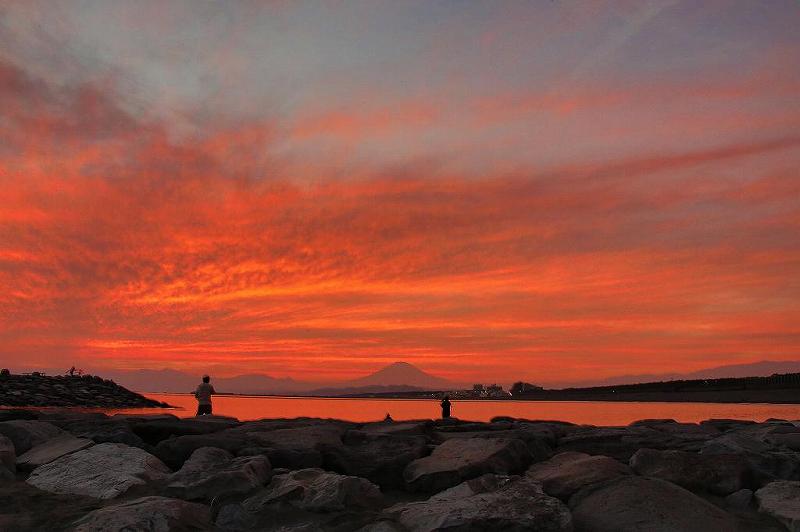 到着時低い雲が東にも西にもあって、決して恵まれた条件ではなかった。その憎らしき雲が、日が沈んだ後、赤く染まってくれた。この日の夕焼けは、かなり凄いものだった。自分的にも今まで見た中でもトップクラスと言っても過言ではあるまい。大袈裟に言えば、地球なのか?と言った感じ。