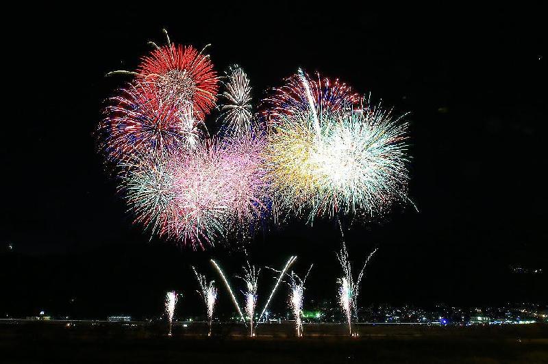 既にそこにはカメラマン一人がスタンバイ。しっかり話しかけられたが,その方は富士川花火をを有料席で観覧されたそうで、「良かった」と言っていた。どう良かったかはわからないが,近くで見ればそれなりだったのかもしれない。会話を続けたそうだったが遮り、もう一セットカメラと三脚を用意しに車に戻った。実はこのもう1台がないと、鵜飼橋を挟んで打ち上がる花火は2箇所打ちゆえキャッチするのが忙しかったかもしれない。