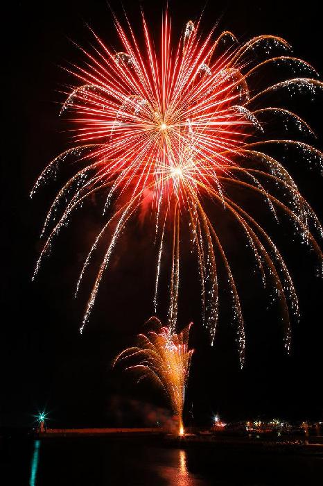大袈裟に言えば、昨年暮れの大失敗を引きずったまま新年を迎えた、と言ってもいいくらいだ。後で調べた結果、按針祭の名前が付く花火大会は、二箇所打ちが基本だとわかった。西岩壁と湯川東離岸堤。昨年の12月に撮ったのは右手の西岩壁から打ちあがったそれ。そこで、この日はカメラ3台体制で、ラストの対打ちを専用カメラに任せるべく、中央にセット。ただ、自分が手持ちの最小画角は12〜24ミリレンズしかなく、これでダメだと今回の作戦は失敗に終わる事になる。果たして、なぎさ公園の最前列での撮影は、・・・。結果、二箇所の花火が離れすぎていて、言葉を変えれば花火との距離が近すぎて、両方の花火は捉えきれず。中央がモヌケノ殻となってしまい、沈没。初めから魚眼レンズにしておけば良かったと後悔。