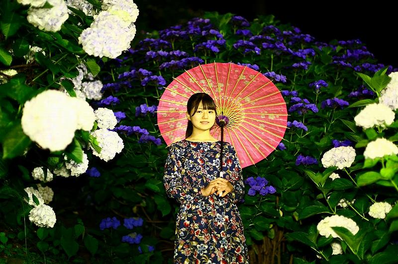 撮影時間は、二時間程度。夜間の人物撮影は久しぶりなのと、他の見物客に迷惑のかからないように配慮、アジサイが咲いている法面側は、通路が狭く三脚が思うように使えなかったなど、未熟さを痛感した。結果、一部手持ち撮影と言う暴挙!それでも何枚か、まともな撮影も出来ましたので、今回はオール人物撮影をお届け致します。 |