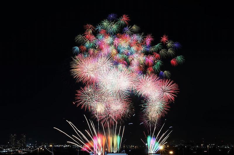 19時開始間際には、階段にもびっしり着座。カメラマンの後方も狭い場所に多くの人が立っていた。予想通りドローンから始まった。昨年石巻初めて3回程撮影しているので、物珍しさも薄れたが数枚アップ。その後、低い位置でのトラの尾だけが繰り返され、カメラマンをがっかりさせた。想像するにこのトラ花火と一緒に初音ミクが踊っていたのかもしれない。そのあと30分以上、初音ミクのバーチャルでもやっていたのだろう?微かに音だけは聞こえた。この間、余りにも暇すぎて先程の埼玉県のカメラマンと鹿児島県から各地花火を転々としているという、こちらもS氏と各地花火大会の情報交換をして時間を潰した。そのうち、初音ミクの大ファンだという三脚無しのスマホ野郎が割り込んできたので、手すりの欄干に固定する形で場所を提供してあげた。抽選に外れた様で、「もし、僕会場にいたら失神していたかも知れません。場所を提供してくれてありがとうございます。」あーそーですか?
