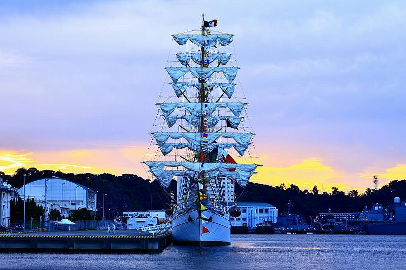 リハビリの後、鎌倉の檀家のお寺に野暮用があったので、腰越まで出向いた。すでに16時を半分ほど回っていたのだが、カナロコ・ニュースで海上自衛隊横須賀基地にメキシコの帆船が寄港していて、夜間ライトアップされるというので、渋滞覚悟でそのまま134号を走り、横須賀まで足を延ばした。