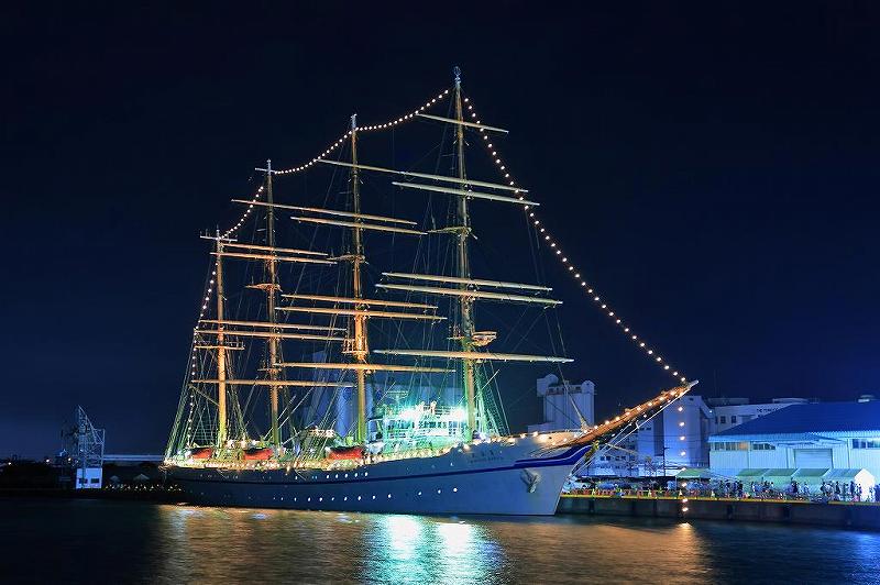 7月9日の帆船「クアウテモック号」の美しさに多少なりとも感動した事もあり、それより大型の「日本丸」の姿もみたくなった。ランプの数こそ少ないもののライトアップもすると言うので、撮影したい要因の一つが増えた。