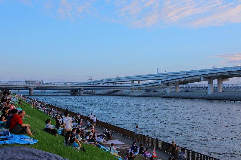 実は、またしても場所取りに失敗した。1時間程度で到着するはずが、倍近くかかった。勿論、江東区で行われる花火を江戸川区から見ようとしたのだが、当初目論んだ場所へ辿り着くだけの時間が無かった。葛西橋と青砂大橋の間には川が2つある。荒川と中川だ。穴場的には首都高速中央環状線高架下とあったのだが、高架下への道が何処から入るのか探す時間がなかった。