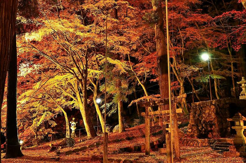 期待を上回る鮮やかな紅葉に、疲れを忘れていたとは言え、やはり動きが一気に遅くなった。ライトアップに備えて、IHで焼きそばを作る。こう言う時のそれは、家で食べるより数段美味しい。具材もろくに用意していないのだが・・・。腹ごしらえの後は爆睡であった。砂利の駐車場にどんどん車が入ってくる音で目が覚めた。一瞬、自分がどこにいるのか記憶が飛んでいた。ライトアップはすでに始まっていた。急いで三脚にカメラをセット。