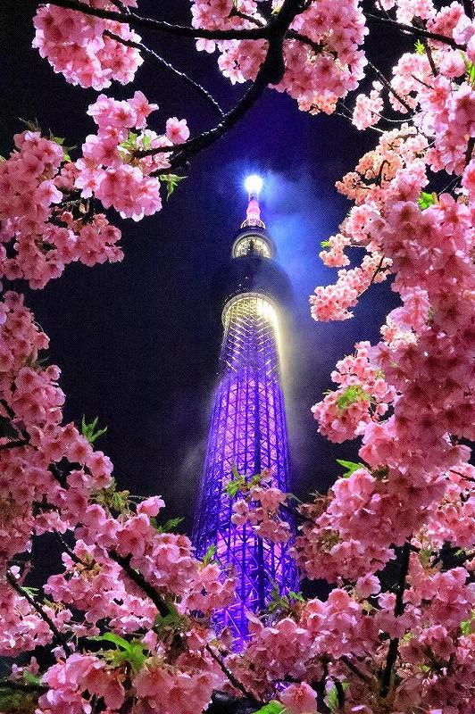| 3月の栞 『蔵前神社の東京スカイツリーと河津桜とミモザ(ライトアップ)』 |
