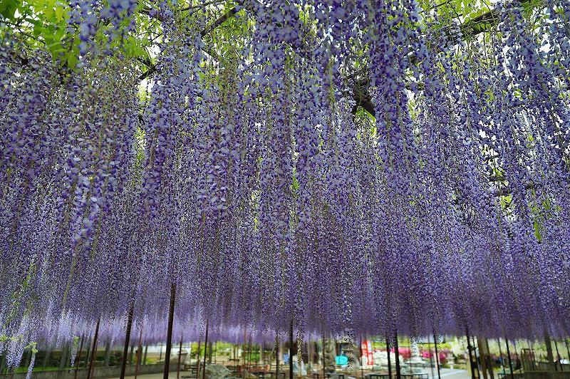 あれから15年以上経過しているからか?元々ここのフジが凄かったのか?は判らないが、樹齢650年のフジは巨大な広がりと長い房を垂らし、見頃そのものだった。撮影意欲が萎えてしまった塩船観音のつつじとは違い、思い切り時間の経つのが早い。どうやっても咲いていないツツジを撮れないのと、どうやって撮ろうか?迷うフジの違い。来訪者も、それ程は多くないので足利フラワーパークの様に「人を入れないで撮影するのはムリ。」と言った環境では無い。時間的にも帰る人多数、来る人僅か。藤の見事さから言えば、足利フラワーパークに勝るとも劣らずか?