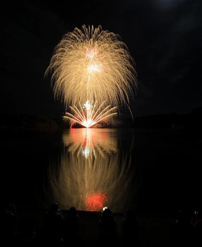 花火自体は1箇所内、1000発の内8号程度(尺は無かったかラストの冠菊だけの様に思えた)が数発。特別なんの感想もない。珍しく風が殆どなく湖面への写りはまずまず。月を入れたいと思い16ミリで撮影したのだが小さすぎました。