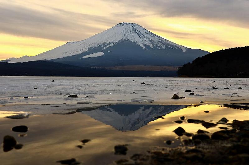 幸い、体調悪化はしていない様なので、近場の山中湖ダイヤモンド富士と河口湖冬花火に出掛けてみたい。具合が悪くなれば山中湖で戻れば良い。この日は気温は高かったものの薄曇りの殆ど風なし。出かける前から怪しかったが、案の定、雲に乱反射した光が太陽の形を不鮮明に。カメラマンもそれほど多くはなく、アヒルの様に捲し立てる中○人も、それほど多くはなかったが、とにかく平野の湖畔は「わ」ナンバーの車が目立った。氷は水際では溶けていたが、その先は結氷していたのでダブルダイヤモンドは無理。それでも長靴を履き、スコップを持って無理矢理氷を割り、残骸を積み上げ芸術的な作品づくりを試みるカメラマンもいた。