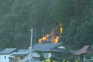 『他の流派の龍勢花火プラス発生した火災』