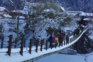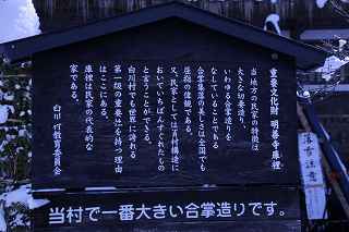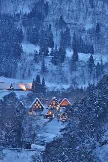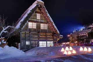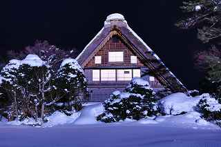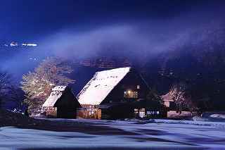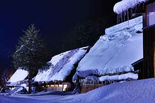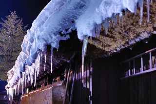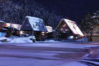 | 白川郷ライトアップ: 1月19,26,27 2月2,3,9,16の7回いずれも17:30〜19:30 往復経路: (行き) 中央道松本IC⇒R158安房トンネル⇒中部縦貫道飛騨清美IC⇒R156庄川経由にて白川郷。 所要時間6時間30分 走行距離380キロ。 (帰り) 白川郷ICより東海北陸道に乗り5時間30分。走行距離350キロ。 天気: 8時〜10時小雪混じり。10時〜13時晴れ。13時以降曇り勝ち時々小雪。 乾燥した雪質ですから撮影には影響なし。 その他: * 安房峠越えは安房トンネルを出てからの上り坂ヘアピンカーブ、平湯トンネルを出てからの長い下り坂、いずれも細心の注意が必要。かなりのノロノロ運転しか出来ません。 距離的には長くなるものの東名高速⇒東海北陸自動車道を利用した方が安全だし、きっと疲労度が違います。 * 靴には簡易な滑り止めが必要。夜間はマイナス10度以下になるため昼間溶けた雪がアッという間に凍ってアイスバーンになります。 三脚を担いでいるカメラマンにとって転倒は二重の痛みを味わうことになります。 * とにかく大変な混み具合です。昼夜問わず観光バスがひっきりなしです。 数少ないライトアップを期待しての集中かも知れませんが、個人的にはライトアップがなくても充分幻想的な写真は撮影可能です。 静かな白川郷を堪能したいのであれば、別な日に来るほうが、むしろ好みのアングルで効率良くじっくりと撮影できるように感じました。皮肉なものですがー。 撮影日:2013−2−9 世界遺産白川郷にて |