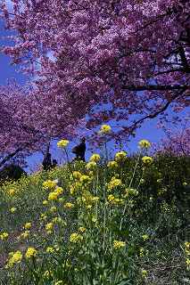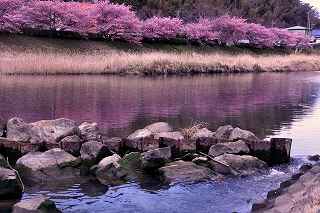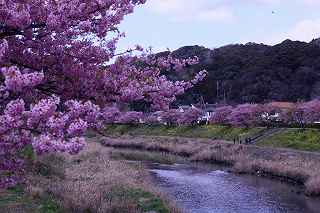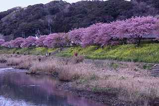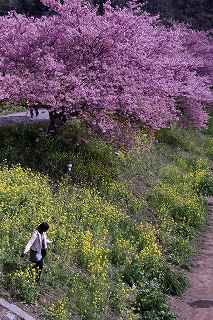 | 早咲きの桜の名所が南伊豆町にもある。 河津町からはカーナビで、40分と表示されるが、国道135号、414号の利用が出来る為、下田駅周辺の渋滞がひどく、敬遠がちである。 仮に電車を利用したとしても、「桜と菜の花まつり」会場までの交通の便が悪く、河津の桜に比べれば、人出は少ない。 写真愛好家の間では、「みなみの桜」とは言わず、『青野川』で通っているようだ。 今回の撮影は、『のどかさ、のんびりさ』を表現する事を念頭に置き、時々、雲の合間から顔を出す、太陽と一部分だけの青空を背景に、のんびりと撮影しました。 撮影日:2012−3−13 南伊豆町にて |