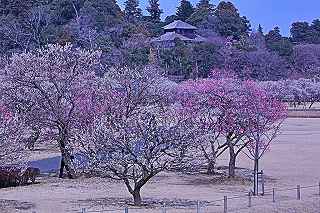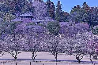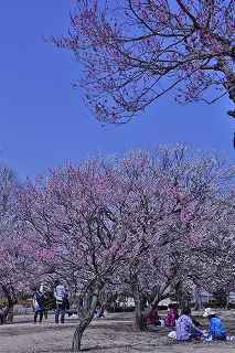 JRの渡線橋である梅桜橋を渡ると、そこは整然と梅の木が植えられた開放感溢れる芝生公園であった。 ここの公園の梅の花を見て、HP上にあった「全ての花が開花いたしました。」を実感した次第。 比較的若い木が多いのか、どれも花のつき具合がよく、木と木の間隔も空いていて、梅の木の下でのんびりと寛げる。ここからはどこを歩いても、梅林に囲まれた好文亭を見ることが出来、ビューポイントも何箇所かあったみたい。 千波湖や更に奥の梅林にも足を伸ばしたかったのですが,早朝からの歩き過ぎと、20度を超える気温のため疲労がピークを迎え、やむ無く仮眠を取るべくクルマに戻らざる得ませんでした。