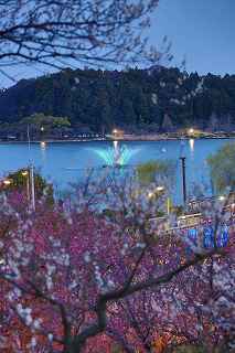 | 1.17:58ライトアップ直後 | 2.18:04千波湖を臨む |