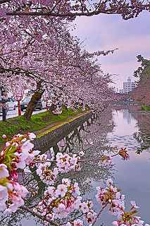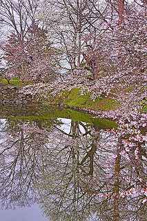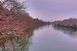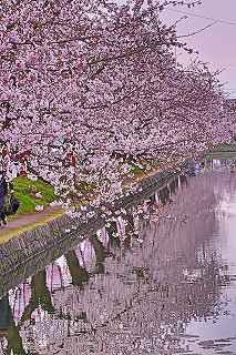 | ゴールデンウイーク中、東北北部は天気に恵まれず、尚且つ気温が大変低い状態が続き、桜の開花及び満開時期がどんどん後にずれ込んでしまった。 わたしの計画も弘前の満開に合わせて、5月3日の予定が4日に、4日がイマイチと聞いて5日へと出発日をずらしてはみたものの、対応しきれずに見切り出発となってしまった。 (6日では流石に次の日の仕事に差し支えるので) 例年なら連休後半には、外濠に浮かぶ桜の花びらを撮影することが出来るのですが、今年は園内でも比較的開花の早い外濠さえ満開とはいえない状況だったのにはびっくりせざる得なかった。 天守閣広場で、どんよりした空に、輪郭のはっきりしない岩木山を眺めながら話しをした、宇都宮から来たと言うカメラマンは、「去年と同じ日に来て、去年は遅すぎ、今年はこれだもん。」と半ば諦め顔で、広場のソメイヨシノを恨めしそうに振り返った。 確かに、広場の桜と西濠、桜のトンネルはとてもシャッターを押す気にはなれない蕾状態。 かろうじて西濠の対岸の桜だけは満開に近いものだったが、桜のトンネル側はこの曇天で一層どす黒いピンク色。 左右の桜の色が全く違う桜並木を撮影することになってしまった。 雨は止まず気温は低い。 それでも有料になる7時前にはかなりの人が続々訪れる。 ポツポツと雨の降る中では、普段気をつけている、撮影に際してその意図に寄与しない人物を入れないように人並みが途絶えるのを待つ、などと言う悠長なことはとても出来ない。 カメラやレンズの動作が雨で途絶える方が怖い。 少し強めの降りになった時は東屋で凌ぎ、少し弱まったのを見計らって再び撮影開始。 小止みになるのを待ちながら座っている間にも観光客は続々増える。 そしてじっとしているものだから、どんどん体が冷えてくる。 空は暗くプラス補正をしすぎる程しても画像は暗め。 昼近くまで、機材を布で拭きながらの、能率の悪い撮影をして粘ったものの、雨は止むことはなかった。 当初、弘前でライトアップまでの撮影を予定していたのだが、ラジオの天気予報を聴くと東北南部は晴れているものの、北部は昼ごろまで小雨、後次第に回復の見込みだと宣う(のたまう)。 しかし現状、この空を見ていると半信半疑。 既に過去の訪問で、本丸や一本桜のライトアップは撮り終えていたものの、今年はまだ撮影していない西濠の両側の桜のライトアップを狙っていたのに、この開花では撮影に堪えず。 やむを得ず、一時間の仮眠後、弘前を離れる決心をした。。 撮影日:2013−5−5 弘前城址公園にて |