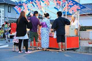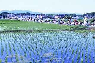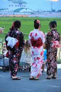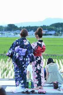 | 1.観覧場所は水田地帯 | 2.浴衣姿の若い女性が目立ちます |