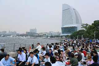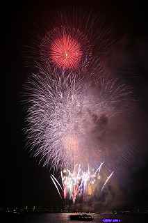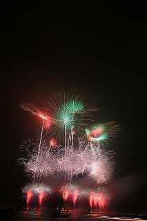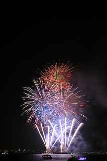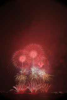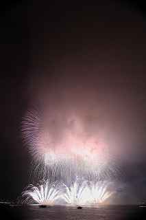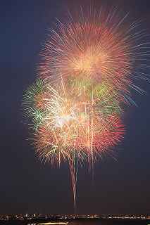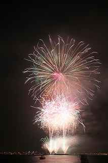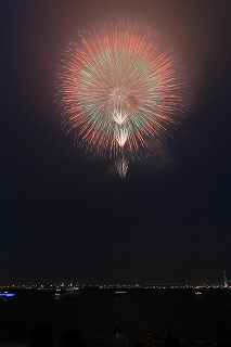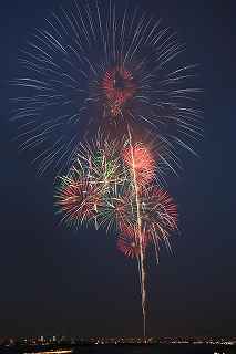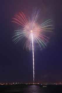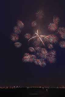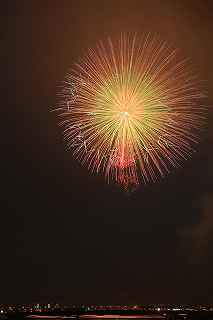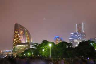 | 昨年より有料区域が広範囲に設定され、日付けが変わってからの熾烈な場所取りは、かなり改善されたのかも知れません。元々ここはトラブルの多い大会。 コンビニで買った入場券を見せると,30センチ四方ぐらいの簡素な敷物を渡された。 今年初めて有料チケットを購入した私は、一瞬その小ささに焦った。 これでは腰をおろすだけのスペースしかないからだ。しかし有料エリアに入ってみると、持参のレジャーシートは禁止のはずなのに、相も変わらず大きなブルーシートが平気で広げられているではないか! 以前からここはマナーの良くないグループが目立つのだが、その原因のひとつは誰も注意する係員が居ない事も挙げられる。 お陰で私の不安もすっかり取り越し苦労に終わり、堂々と三脚を立てることは出来たが、ではこの小さな敷物は一体何の役に立つのか疑問が残る。 前置きが長くなってしまいましたが、元々天気予報では、確率は低かったものの雨マークつきでした。 チケットを買っていなかったら大変迷ったに違いありません。 と言うのも7月6日、資金不足から50年も続いた弁天島花火(浜名湖)が今回で終わると言うので、馳せ参じたものの100メートル上空は濃い霧なのか靄なのか、ものすごい湿気で全く見えなかったという、苦い経験をしたばっかりだったからです。 あのときの光景は今でも忘れません。 一発目があがった瞬間、我が目を疑ってしまいました。 本当に打ちあがったのか全く見えないのです。 そして次の瞬間、黙って三脚を片付け、一人二人と帰って行くのです。 三脚のカベを櫛の歯一つ一つに例えるなら、一本、二本と折れてゆく、そうカメラマンの心をひとつ、ふたつと折っていく感じでした。 なかなか本題に入らずにすみません。 つまり本題を述べるには残念な結果だったのです。 弱いながらも逆風。(夕方になるにしたがって、南東から東、東から北東へ、予報どおり)。 プログラムが進むにつれ、煙だけでなく花火かす、少し大きめの破片も飛んでくるし、(撮影は半分以上諦めていましたから、「外野フライ(殻の破片)でも飛んでこないかなぁ」といった手持ち無沙汰でした)。 後半には火薬の匂いもきつくなって来ました。 掲載した写真の殆どが第一部のもので、第二部のスカイシンフォニーIN YOKOHAMAからは、本当はきっとものすごい盛り上がりを見せる筈だったのでしょう? (男性声優さんだけはものすごく盛り上がっていましたが)。 息もつかせないスターマイン の煙幕が煙幕を呼ぶ結果になり、空虚な時間が過ぎていきました。 最後の二尺も音でこそ、それとわかりましたが、かろうじて外側の輪郭が見えただけで、周囲からもため息と落胆の声が上がりました。 この大会は、比較的天候に恵まれることが多かったのに、今年の夏は未だ本当には到来していないのではないか?と思わせる悪条件の花火大会が続いています。 帰路R1号を東戸塚まで来ると雨が降り出し、藤沢に近着けば近着く程、アスファルトに水が浮いていました。 大会途中に雨に降られなかっただけ良かったと思うしかありますまい。 撮影日:2013−8−1 19時〜20時30分 みなとみらい21にて |