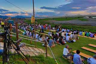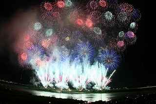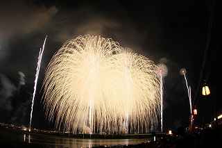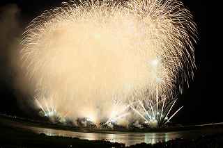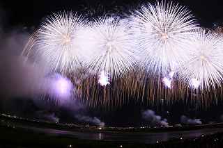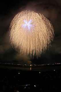 | 今年から、大幅に有料の観覧場所が増え、4000円でカメラマン席まで登場。 その応募倍率は、2日(金)が4.3倍、3日(土)が3.9倍。 2日の方が倍率が高いのは担当煙火店によるものと推測できる。 私は8月1日に神奈川新聞花火大会に出かけ、2日に仕事をし、3日に長岡に出かけた。 知り合いの何人かは、神奈川新聞の後、すぐ長岡へ立ち、2日、3日連続の花火観覧は常識の範囲らしいが。 きっと、くじ運もいいのだろう? これまで、熱中症、脱水症状、日干し覚悟で並び、土手の最上段を目がけシートを持って猛ダシュしていた(平身低頭、私は人に頼んで場所取りしてもらい、その経験がありませんが)事を考えると、健康面からも有料化は必要だったのかもしれません。(本当は言う資格無しですが)。 今回の有料化により、当選した人には15時開場という案内が来たけれど、元々番号がつけられているので(私は43番)並ぶ必要もないし、打ち上げ開始一時間前でも充分。(心配なのは市内の交通渋滞と駐車場だけ。) 現に、自分は17時に受付を通ったもののカメラマン席の両隣さんは、未だ到着していませんでした。 カメラマン席とはよく言ったもので、土手の法面でそれなりの傾斜があり、カメラマンじゃなければまず座らない場所。 知らず知らずのうちに、足に少しばかり力を入れて踏ん張っていたので、老化現象の目立つ私は、後日筋肉痛及び関節痛になりました。 「4000円払うなら。」と知り合いの何人かは少し安い有料自由席に回った。 彼らの言い分は、「カメラマン席の横幅が1メートルと狭い」こと。 確かに180度近い打ち上げ範囲のある長岡では、全てのプログラムを撮ることは困難であっても、隣同士の干渉を少なくするために、隣が最上部なら、こちらは最下部と、互い違いに三脚を置くことになる(あるいは三脚の高さで)。 その場合でも、隣との幅が1メートルは狭すぎる。 トイレの設置場所を変えるなどで幅を広げても、収容人数を同じにする、改善余地があるのではないかと思う。 カメラマンの目は厳しいし、仲間内でカメラマン席の魅力が薄いと結論付けられれば、来年も同じような倍率を維持できなくなる可能性があります。 (それは結局、ほかのエリアの倍率を高くすることとなります。そして又激戦を招く。) 今年の長岡花火で私がポイントに置いたのは、スターマイン系の撮影を成功させることでした。 初参加でありながら、幸運にも昨年は気象条件がすばらしかったのと、第一日目から来ていたW氏の最高のアドバイス(位置と画郭)で、ほぼ100点満点の三尺玉の撮影に成功したから。 今回は三尺は見るだけにし(元々この日は弱風で、大会全般を通して気象条件は昨年の比ではなく、決して良いとは言えず、三尺も右3分の1が煙で薄れてしまっていました。)、初めからレンズは17ミリと魚眼装着の二台態勢で臨みました。 天地人とフェニックスが撮れ(取れ)れば良しと割り切ったのです。 折から数日前、豪雨による崖崩れで、尊い命が奪われた長岡市。 慰霊の花火を上げると共に全員で黙祷を捧げてからの開始となった。 (これが又、長岡花火にふさわしい感じです。) 長岡の花火が素晴らしくない訳はありません。 花火に詳しくないので、賛辞の言葉が見つからないだけです。 代表的写真には拙い説明をつけました。 又、最大にして最高のプログラム=平原綾香の歌う「ジュピター」にシンクロさせたフェ二ックスを動画にてご紹介いたします。 本来動画は私の本意ではありませんが、長岡花火の凄さを、ほんの僅かでもお伝え出来れば本望です。 そして一度も出かけられたことの無い方は、是非一度ご覧になっていただきたいです。 このようなへたくそな動画では、迫力の一割くらいしかお伝えできませんが。 もっとも何人かの方に、カメラによる再生でお見せしましたが、お一人だけ目がウルウルした人がいました。 大の男でしたが、逆に私は、これを観て感動できる心が羨ましかったです。 もし彼が本物を見たら、ハンカチがビッショリだったりして・・・? 来年は土曜、日曜開催です。 目茶苦茶混みますけれどもね。 撮影日:2013−8−3 長岡にて |