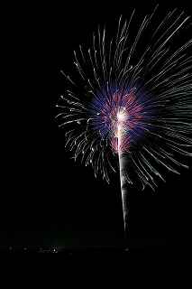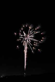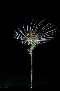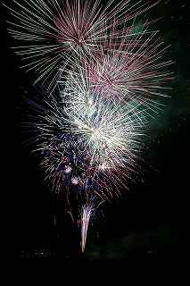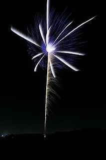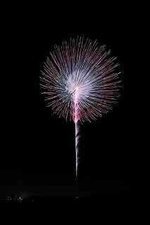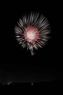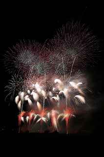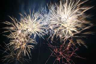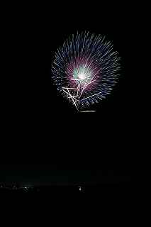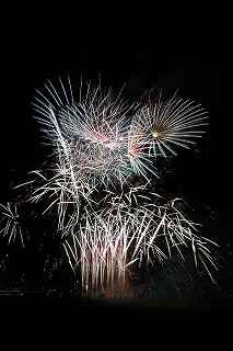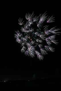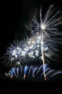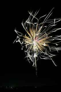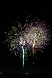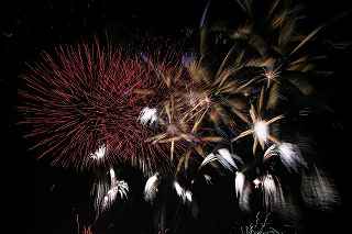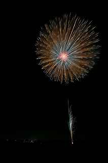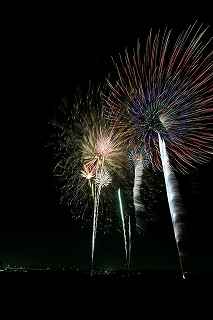 | 当初、週間天気予報では降水確率も半分近くあったように記憶している。 ところが台風崩れの温帯低気圧が、日本海に入りそうな気圧配置となり、周りを山地に囲まれた関東平野はかろうじて晴れマークが付いた。 月末ゆえの忙しさもあって、仲間には行くことを保留にして有ったのだが、この大会の質を考えると行かないのも悔いを残すことと成る。 昨年は朝早く到着して全く時間の無駄をしてしまったので、今年は、法面の1500円席が解禁になる15時の少し前に到着するように家を出た。 土曜日でもあり渋滞を考慮して、所要2時間半を目論んでいたものの、渋滞もなく2時間で着いてしまった。 車を降りるとフェーン現象のせいか、ものすごい熱風で、湘南では考えられない体感だった。 但し湿度が低く、思ったほど汗が出ないのは有り難かった。 協賛者席の入り口迄行くと、受付が16時に変わっていた。 ホームページでの調べ方が甘い自分が悪いのか、主催者が知らせていなかったのかは判らないが、ここでは2年続きで時間的ロスを経験することとなった。 別に特別早く来なければ場所が無くなる訳でもなく、昨年同様18時を回っても1500円エリアはガラガラだった。 知り合いの多くは、事前申し込みの2000円席か、16時開放の1500円エリアだ。 私も当初1500円エリアを考えていたのだが、堤防道路に出るとかなり風が強く、場所取りのブルーシートの何枚かは飛ばされそうに成っていた。 とりあえず協賛者観覧エリア受付に、順番待ちの荷物を置き(暗黙の了解らしい)、堤防道路を北の方向に歩いてみた。 法面にもチラホラ三脚が置かれていて、その場所から打ち上げ方向を眺めても、極端に花火の筒が斜めになっているとは思えず、1500円席が圧倒的有利だと言うメリットも見出せなかった。 「8月は相当出費をしているし、ここは一つ1500円をケチるか!」まあ、それは半分冗談として、その時点での気圧配置は山口県から島根県辺りにある台風崩れの温帯低気圧が、次第に北上して来ているはず。 とすれば、当然南風は今より強くなると考えるのが筋。 「おそらく、ろくな撮影は出来ないだろうな。」というのが本音。 風上の豊水橋の方へ回ることも考えたが、今年は橋桁に工事中なのか、ネット状のものがかぶせてあり、シルエットとして生かすことが出来ない状態だった。 未だ日が暮れない18時20分から、プロローグ花火が打ち上がった。 左から右へ結構な勢いで花火が流れて行く。 5号玉なのに、この場所は打ち上げ場所にかなり近い感じだ。 この時点で、レンズを28ミリのままにしたのが失敗の始まり。 オープニングのナイアガラをアップ気味で撮ろうと考えたのだが、二兎追うものは一兎も得ず。 プログラムNO2と3は撃沈。 あわてて17ミリを装着しメッセージ花火を撮影して驚いた。 風が左から右なんてものではなかったのだ。 地下鉄の通風孔の格子状になっている鉄板の上を歩いていた女性のスカートが、下からの強風で・・・例えが悪いので改め、少女の長い髪が、春一番の強風に見事に翻るような、左から右上空に舞い上がって行くではないか!。 割り物を撮影していて、まるで花火の真上に掃除機の吸引口でもあるのでは?と思ってしまう位。 こんな楕円形、今までに撮った事ありません。 いきなりテンションが下がったものの、それでもめげずにシャッターを押しまくったのは、やはりここの花火が素晴しく、全てが型崩れになることを承知で、知らず知らずに夢中になっていたからに違いありません。 風向きからすれば、まだ有料席の方がダメージは少なかったように感じましたが、無料で撮影しているのだから、これで良しとすることにします。 今回撮影した場所は、右側にあがる8号がほぼ真上に見られ、観覧には何の不足もありません。 後ろに座っていた地元の方とお話いたしましたが「毎年ここに座って見ているよ.」と言われました。 こんな素晴しい花火が、結構お手軽に見られるなんて贅沢です。 撮影にはチョッと迷う場所探しも、見るだけならお勧め花火ですし、土手が弧を描いているので、広範囲に観覧場所があるのは有難い。 終了後は、数人で花火談議をした後、1時間ばかり仮眠をし23時に車を出しましたが、先程の雑踏が嘘の様にガラガラで、R294をハイスピードで抜けて常磐道谷和原ICへ。 たまたま後方からかっ飛ばして抜いて行ったAUDIを猛追し、首都高速、横浜新道、R1、約110キロを90分で帰って来てしまいました。 この程度ですと、全く疲労感もなく、翌日に回してあった仕事にも影響は少なく、お気軽花火といえます。 掲載しました作品は本来なら原形を失っているものばかりで、全て没のレベルですが、花火作品自体は優れた力作ゆえ、ご紹介させていただきました。 撮影日:2013−8−31 18時20分〜20時20分 茨城にて |