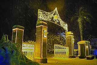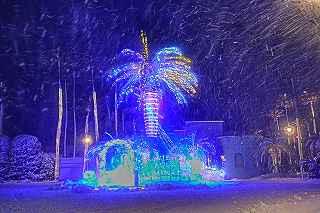 | 19.ソテツも雪をかぶりイルミ状態 | 20.吹雪状態になりこれにて退散 |
