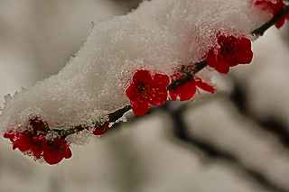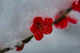| 21.自宅の紅梅 | 22.雪をかぶる梅のアップ |