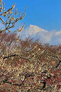 | 昨年11月、新道峠で知り合った、平塚にお住まいのF氏から、「さった峠と岩本山への道を教えて欲しい。」との電話が入った。 さった峠は口でも教えることが出来る順路だが、岩本山は何回か出掛けてはいるものの、その都度アプローチが違っていたので、説明が簡単には出来なかった。 そうしているうちに、再度電話があり、富士市観光課らしきところへ梅の開花状況確認の電話を入れたところ、そろそろ見ごろとの回答を得たとの事。 たまたま昼間、お互いの都合が合致したので、午前5時、R134馬入橋を渡ってすぐのデニーズ前で待ち合わせた。 この日は東京でも雪が降ったらしいが、箱根は結構な雪で、視界が遮られるほどだった。 箱根新道はまだ2月の大雪が残り、道路も完全には除雪が出来ていないし、雪のカベはガードレールを遥かに越えていた。 沼津、富士市に入っても、寒気が強すぎるのだろうか薄黒い、分厚い雲が低く立ち込めていた。 富士山は全く見えない可能性が高かったが、岩本山で2時間ほど粘っていたら一瞬頭の部分だけ顔を出してくれた。 実際にはとても満足できる撮影条件ではなかったものの、F氏は、「道が分かったので、明日か明後日もう一度来て見ます。」と残念そうな表情の中に、カメラマンらしい根性を見せてくれた。 私の方は、リベンジしてまで撮りたい被写体ではなく、再チャレンジは考えず。(桜の季節になったらついでに寄ってみたいとは思っています。) 富士山が見えないので手持ち無沙汰にしていると、肩に担いだ報道用カメラと、棒の先に取り付けつけた象の鼻のようなマイクを持った5〜6人の集団が、「おはよう御座います」と声を掛けてきた。 先頭の若い美男子(言葉が古い)改め、イケメンがニコニコして、「何を撮ってるんですか?」とわざとらしく尋ねる。 既に収録が始まっていることを察知した。 こっちも役者ぶって、「富士山と梅をからめて・・・」。 イケメン「ワアオー、素晴しいですね。」いよいよショー染みてきた。 「でも残念ながら、富士山の機嫌が悪くて・・・。 シベリア高気圧が張り出してきて今日はいいと思ったのですが。」ここまで言うと周囲のスタッフの顔が変わった。 「でも見えているじゃないですか!実は僕、気象予報士なんです。」ヤバッ、専門家の前で生意気なことを申し上げてたしまった。 平身低頭、ペコペコする自分。 ニコニコするイケメン。 ここで不満げな言葉を言ったら彼らに悪いので、「これもまた富士、この富士山は今日でなくては見られませんから。」と、負け惜しみを言う自分。 うなづく若僧。 ここから先は単なる雑談へと。 彼は、SBSテレビの夕方の番組イブニング・アイに登場する気象予報士の比連崎実さんと言う方で、以前鎌倉に住んでいて、江の島にはよく行ったとか、気象予報士になるのに毎日10時間位勉強したとか、全然番組には使えそうにない話ばかりを10分ほど。 最後にカメラマンから、私が撮影した画像が欲しいと言われ、メディアをパソコンに取り込んでいました。(決して放送に堪えうるものではありません。) まあ、過去にも経験ありますけど、こういうのって、大体没か、良くて10秒登場すればいいといったところでしょう。 もちろんSBSテレビは神奈川では見ることは出来ませんが。 撮影日:2014−3−7 富士市岩本山公園にて |