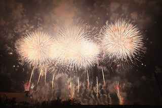 そのT氏が中心となって、伊勢原市に於いて、花火大会を開催するはこびとなった。 初回は、3年前、地元農家の田畑を借りる事ができたが、あいにくの雨の中での打上げだった。 今回の打上げ会場は、市の協力も有り、伊勢原市総合運動公園が利用できるとの事。 T氏の働きかけで、花火業者は、日本を代表する「磯谷煙火店」が、土浦や大曲や隅田川で入賞した花火を持って来た。 天候は、東寄りの風2メートルとほぼ逆風、八号玉まではともかく、最大の見せ場である「メロディースターマイン」は煙の中。 よって、写真では全くその良さをお伝えできませんが、「磯谷煙火店」の地元・愛知県に行かなければ見る事が困難な芸術花火・・・ この目にしっかりと焼き付けました。 撮影日:2012−4−15 伊勢原市総合運動公園にて |