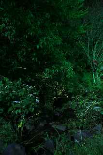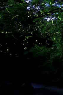 | 湯河原観光協会のHPに万葉公園の蛍が100頭を超え、見頃を迎えたとの案内が出たので、師匠と小田原で落ち合い撮影に出掛けた。 私の仕事が19時まであるため、日没間際のブルートーンの撮影は出来ない。 その点は師匠に申し訳なく思った。 もっとも湯河原の場合、7時半ごろの混雑は三脚を立てられる状況には適していない。 早くから場所取りしてあっても、潜り込んで来る子供は未だ我慢できても、後ろで文句を言う人もいて、どうもすみませんと言った感じ。 温泉客の中には、既に出来上がってから、千鳥足で来られる方もいるので、三脚につまずいて、怪我でもされたらと結構気を遣う。 そんなことも師匠は了解しておられるのか、21時過ぎ着でもOKのお返事だった。 師匠と初めて出会ったのはここ万葉公園、もう7〜8年前のこと。 毎年出掛けているわけではないものの、お手軽さもあって、いつも緑のLEDが明るすぎる中で蛍の撮影している。 しかし4〜5年前に比べるとピークで200頭はいたであろう数は減った。 それが半数になったとしても、環境に見合った生息数なら仕方ない。 この日は21時過ぎと言うこともあったし、日中雨が降っていたせいか見物客は少なかった。 よって、来る人の何人かと蛍を眺めながら会話も出来た。 中でも、師匠は、茅ヶ崎から来られたご家族に写真の撮り方を教えたり、仕事帰りの旅館の若い女性従業員4人組に、蛍の一生を細かく解説していた。 それはまるで、万葉公園専属の蛍解説員のごとき知識であった。 その間自分は撮影に専念していたのだが、どうも頭数が少なく、気に入ったものが数カット撮れただけで、心残りであった。 数日後、小4の教え子と母親が蛍を見たいと言うので、師匠にアドバイスを頂いたところ、出雲大社か、千村が良いのではないかという回答を頂いた。 確かに距離的なことを考えると(お二人とも車に酔うそうで)お手ごろな場所である。 6月8日の湯河原の蛍撮影において、1回のみで満足できる枚数をアップできたとすれば、アドバイスに従ったであろう。 しかし、唯でさえ蛍撮影は時間がかかる割には、枚数が伸びない。 10枚にも満たないものを、開成町の蛍に引き続き、掲載するのはチョッと寂しい。 そこで、4年生には少し厳しかったが、片道1時間20分のドライブに付き合ってもらい、湯河原の蛍撮影の完結を目論んだ次第。 この日、久しぶりに晴れ、東京では30度を越えた。風も夕方には弱まり絶好の気象条件となった。 蛍の頭数も、20時の時点で活発に飛び交い、8日とは単純比較は出来ないものの明らかに多かった。 彼ら(ほたる)は、彼らよりももっと多い数の見物客を楽しませてくれた。(なお今年のピークは9日と発表あり)。 しかし、矢張り三脚を構えて撮影する状況には程遠く、柵の前に入り込む余地がないのは言うまでもなく、相も変わらず、フラシュを炊く愚か者がいて係員に注意を受けていた。 22時を過ぎると流石に人も激減し、蛍も木に止まって一休み。 飛び交う蛍をバックに教え子を撮ってあげたかったのだが、撮れたのはせいぜい1頭くらいしか飛んでいないものばかり。 ところで、23時を回ると(いつもそうだかわかりませんが、)観光会館入り口の左手階段の照明が消える為、階段を上がって5メートルも行かない橋上から自然発生の蛍を眺めることが出来ます。 それは、グリーンの光がチョッと邪魔な万葉公園とは別の、滝をバックに悠々と(距離と高さと)乱舞する蛍が見られるロケーションなのです。 全くの余談ですが、カップルにとって、20時から1時間万葉公園で蛍観賞した後、一時間程、愛を語り合い(意味不明)、帰りがけに入り口付近の真っ暗闇で、千歳川の蛍の乱舞を観る。 滝と轟々と流れる急流で、二人の囁く声はかき消され、滝の飛沫は覚悟ですが、身も心もしっとりし、いい感じになるかも? 今回、この場所でも蛍撮影をしましたので、おまけとしてアップさせて頂きます。 撮影日:2014−6−8、6−13 湯河原万葉公園にて |