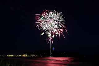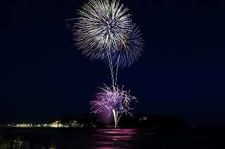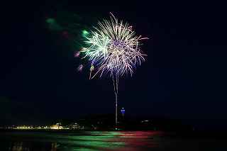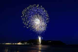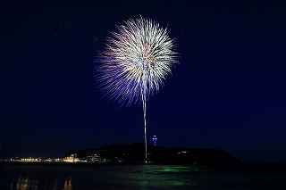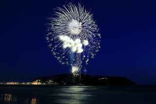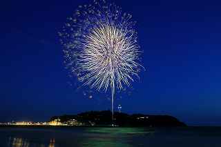 10月実施予定の藤沢江の島花火では、日没が早く、打ち上げ時間には既に暗くなっていてブルートーンの空は期待できないので、8月の花火でオープニングだけでも江の島をバックにダークブルーの空に打ち上がる花火が欲しかった。