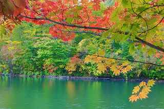 また、対岸まで、近い所で100メートルくらいしか離れていないので、紅葉の木々の間にいるカメラマンは間違いなく写りこむそうだ。