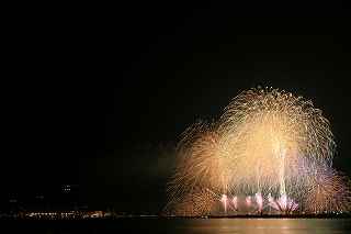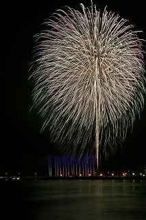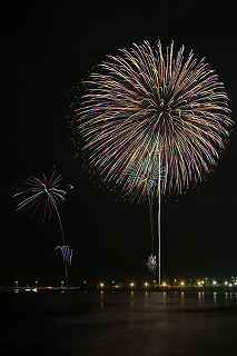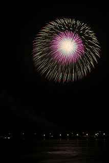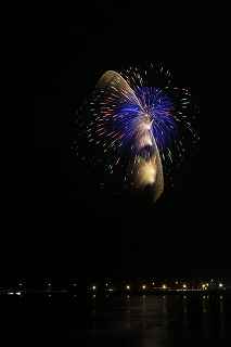 | TVの天気予報が曇り時々雨、ウェザーニュースではずっと曇りマーク、北北東の風、風力3とあった。 16時を回って雨は愚か、雲間から明るい光が漏れ、天気予報とはかけ離れた空となったので、出かける決心をした。 交通手段が自転車なので、雨の心配が少しでもあったら行くのは止めるつもりでいた。 また、風向きによって鵠沼にするか腰越にするか決めかねていたので、仲間には行く行かないを一切連絡しなかった。 北北東の風を信じて腰越まで足を延す事にした。 正味30分で辿り着けるので、16時過ぎに出ても早すぎるくらいだったが、漁港の岸壁に隙間があれば、滑り込もうと思ったし、なければ再び新しく外側に出来た立派な防波堤の上から撮ればいい位の安易な考え。 サイクリングロードを江の島を見ながら走ると、確かに、左斜めからの風。 水族館近くでは、既に相当な人出で思うように走れない。 観光案内所でプログラムをもらい、ゆっくり走って(走らざるを得ず)35分で腰越漁港へ。 漁港の岸壁は意外な事に、空いていて、掲示板の常連となった、オクトーバーさんがしっかり先着していた。 10メートル離れた沖側にはW氏も来ていて、自分にとっては、土浦、鴻巣と不参加だったので、二人から色々聞きたいところだったが、場所取りが先。 W氏の横が、少し空いていたので、とりあえず荷物の一部を置き、場所取りした後、他を探索。 漁港の岸壁が工事後、幅を増し、柵まで付いたので随分安全になった。 実は、自分が今回ここで撮ってもいいと思えたのは、この改修があったから。 それまでも、この位置が丁度有料観覧席と打ち上げ場所の延長線上の真後ろに当たる事はわかってはいたが、幅が狭く、夜なので、物を落としたら先ず水没するのと、自分までも水没する危険性を感じて敬遠していた。 そこで、一昨年は外岸壁の上にある赤い灯台の下で撮影したのだが、今年ロケハンしたところ立ち入り禁止となっていた。 つまり、おそらくそこからは写真が許可なしでは撮れなくなったということになる。 特別いい所ではないものの、チョッと貴重な撮影となった(2013年10月の作品ですが、場所的に今回と比べて余り大差はありませんが)。 今回、江の島と花火打ち上げ位置が離れている為、一台は横位置で江の島を入れて広角、もう一台は花火だけを撮る為の縦位置としましたが、結局どっちも納得行く撮影とは成らず。 矢張り、2尺は専用の縦位置を予め設定しておかないと2台を操るのは、少なくても自分には難しすぎた。 花火の内容、構成は昨年と余り大きく変わってはいませんでしたが、扇打ちや、斜め打ちが多かった感がありました。 最大の見せ場の斜め打ちは露出オーバーの真っ白、掲載したら爆笑されるのが必至なので断念。 地元花火とは言え、急遽出かけたことで、レリーズは忘れるし(オクトーバーさんが予備を持っていましたので、貸して頂き、事なきを得ました。有難う御座いました。)、気合が入っていなかったか集中力が散漫だったか、満足感は得られず。 この点を反省材料にして、次回11月23日えびす講の花火撮影に臨まないと、一瞬勝負の撮影はちっとも上手くならないまま終わりそうです。 撮影日:2015−10−17 鎌倉市腰越・腰越漁港にて |