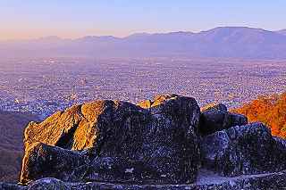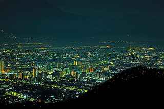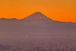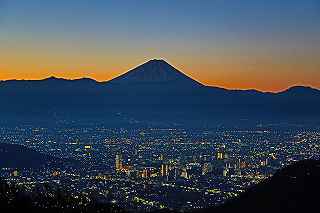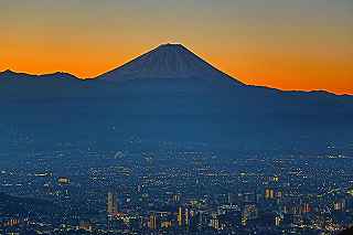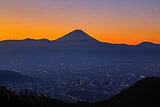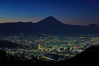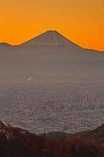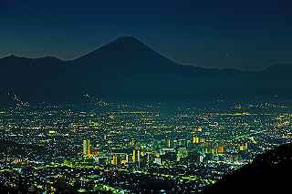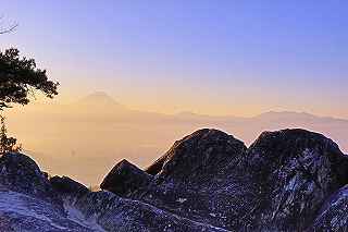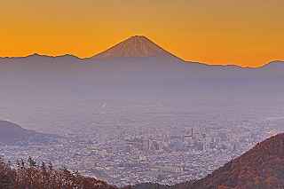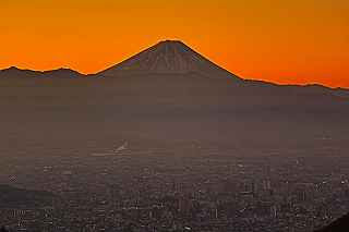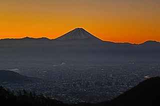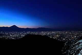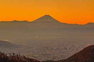 | お天気お姉さま達のおっしゃるとおり、水曜日は全国的に晴れマーク。 富士山遠望で、もう一箇所行きたいところがあった。 山梨県北杜市観音平。 しかし11月27日で県道618号は冬季閉鎖に入ってしまった。 仕方なく山梨県内で、お手ごろ遠望冨士を捜すと、甲府の北部、丁度御岳昇仙峡へ行く途中に千代田湖があり、その左手に今回の撮影地が有る。 昇仙峡へ行くことを思えばメチャ近いし、甲府盆地の夜景なら間違いなく綺麗。 直線距離で富士山まで約40キロ、標高640メートルほどなので、多少気象条件が悪くても距離、高さとも高ボッチの4割程度なので何とかなる。 それでは、そこは一体どこなのか? 実は地図にも八王子山あるいは白山と言う表示があるものは余りないのではないかと思われる。 勿論カーナビにも表示されない。 ただ、先の「撮らずに死ねるか!富士山12ヶ月」には丁寧な道案内があるので、たとえ初めてでも行くことは可能。 とは言うものの、夜間に初めて訪れるにはチョッと寂しすぎ。 車を降りて直ぐ撮影できる高ボッチと違い、林の中の真っ暗闇を10分ほど歩く。 甲府昭和ICを降りてから甲府駅を抜けるので、深夜はともかく、撮影が終わって丁度ラッシュ時ぶつかり、市内は相当量の車が気合を入れて走っていた。 甲府市朝日5丁目から県道104号へ入ることさえ間違えなければ、後は昇仙峡を目指すのと同じ。 和田峠を越えて、千代田湖が左手に見えたら(夜間は見えないので、ナビをしっかり見て)、湖畔手前の道を左折。 400メートルほど走ると貸しボート千和が有りその横を左折、いきなり登り勾配のダート、落ち葉が大量に積っていて、四駆でも多少足を取られる感じ。 突き当たり左右に空き地(決して駐車場とはいえない)が有るが、慎重に入らないと凹凸があり、スタックするとノーマルタイヤの二駆だと脱出が厳しいかも? 車を降りると、落ち葉がフワフワの絨毯のように厚く積っていた。 それなりの、道しるべにしたがって、急坂をのぼる。 階段が一端左に90度曲がるが、暗闇で急に階段が切れたのかと思い、道なき落ち葉を踏みしめて直進してしまう。 狭い範囲しかLEDライトで明るさを保てない夜間は、結構回りを照らしながら歩かないと道に迷いやすい。 違和感を感じ戻り、きつい階段が続く道を何度も休み休み登りT字路を右へ。 直ぐ先の分岐をまた右折なのだが、どう見ても左のほうが広い道。 一瞬、この狭い方の道を行くことを躊躇った。 結局は獣道のような緩やかな右側の登りを道なりにすすみ、登り切った所に突然大きな石が現れ、行く手を塞ぐ。 大石の左から、すり抜けるように坂を下ると、左手に甲府盆地を目隠しするように、花崗岩の屏風が立ちはだかる。 富士山はその石に向かって左45度、方角で言えば南東辺りに、大きく見える。 到着時は正面ばかりに目を凝らして見ていて、その存在がわからず焦ったけれど。 仕方なく、富士山の位置を方角で見つけ出すため、時刻を確認しオリオン座を捜す。 この時間オリオン座は相当西に傾き、その方角から東の空の金星も確認、その少し右横に、想像していたより大きな富士山が座っていた。 ここは富士山も良く見えるが、むしろ、標高が余り高くないので甲府盆地の市街地の夜景、更に左は石和、右は北杜市ままで宝石箱をひっくり返したのような色々な色の光りが手に取るように楽しめます。 花崗岩の先は人工の手すりや転落防止のワイヤーもなく、文字通り断崖絶壁だ。 しかも、左には背の低い松があり、カメラは寄せ切れないし、足場も岩と岩の間で狭いので三脚を置ける台数は3〜4がせいぜい。 勿論こんな平日の未明、誰もいないので場所取りの心配はないが、土曜日などに夕景を見に来る場合などは余りにも狭く危険な場所だ。 夜景の美しさに比べて、次第に明るくなり始めた頃は、薄いガスが甲府盆地を覆い、ただ富士山をぼんやり見えにくくするだけの効果しかありませんでした。 7時少し前、太陽が顔を見せた時は、富士山は相当霞んでいて、薄ぼんやりしてしまいました。 盆地に雲海は発生せず、気温が下がった(といっても1度ほど有りましたが)割にはイマイチの結果となりました。 余り知られていない場所で、これほどの夜景と富士山は、上位にランクされると思います。 撮影日:2015−12−9 山梨県甲府市下帯那町湯村にて |