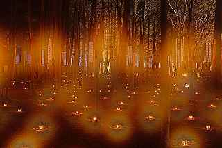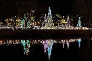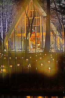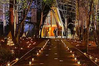 | 地獄谷温泉駐車場に戻ったのは12時少し過ぎ、昼食後、少し先にある「澗満滝」と言う小さな滝《落差107メートル》を訪れたが、余りにも滝までの距離が遠く《100メートル程》全く迫力なし、ほぼ白黒の世界、アップするには気が引けましたので割愛。 仮眠後、軽井沢を目指す。 帰り道に立寄るには都合が良かっただけで、特別被写体を期待したわけではありません。 駅前北口と、南口、そして軽井沢高原教会での撮影となりました。 軽井沢は、学生時代に何回か行ったことはありますが、そこへ行って何をしたのかさえ覚えていません。 と言うことは、サークルで別荘かペンションあたりに泊まり、女子大生たちとテニスやキャンプファイヤーをしたと言った類のロマンチックな出来事はなかったということ。 初め、ショッピングプラザのある南口に駐車しようとしたが、日曜日の夕方、満車の表示だったので、仕方なく北口へ。 その関係で、先ずは北口ロータリー付近のイルミ撮影から。 洗練された町だけあって、駅前にこれだけの飾りがあれば十分きれいだし、わが地元のJR駅の比ではない。 もっともここは、新幹線まで止まるから比べるほうがおかしいか? 南口の「プリンスショッピングプラザ」のイルミは、長野県内イルミ第三位の人気スポットと案内されていたのだが、南口に回った時それ程の感動はなかった。 しかし、少し歩くと、複雑な形をした池を取り囲むように電飾が施されていて、水面への写り込みが自分のお気に入り故、俄然撮影意欲が増してきた。 相模湖、西武園、よみうりランド、時之栖、そしてなばなの里等と比べるべきものではないが(時之栖の一部を除き、これらは全て有料)、こじんまりした中にセンスの良さを感じることが出来ました。 南軽井沢にある軽井沢高原教会は、100年近い歴史を持ち、結婚式場で有名(らしい)。 ここのイルミネーションは、色彩豊かなパステルカラーが新しいLED照明とは異なり、全て茶系で統一され、明るさや派手さを抑えたシック(粋)な感じだった。 将来、この教会で、結婚式を挙げられたらと願う二人にとって、気持ちの高揚を誘う派手な電飾ではなく、温かみのある落ち着いたその色は、恋人たちの引き立て役に徹しているような優しい色に思えた。 自分としてはマイナス一度となったこの寒さに耐えながら、ひたすらシャッターうを押し、サッサと帰るしかなかった(寂しィー)。 当然のことながら教会内部の撮影は禁止だったので(一応確認取りました)、キャンドルの灯った内部はお見せ出来ないのが残念。 点灯時間は22時まででしたが、シャトルバスから、数人ずつですが到着するごとに降り立つので、いくら待っても人物を入れない撮影が困難と判断し21時には撤収。 撮影日:2015−12−20 長野県北佐久郡軽井沢町にて |