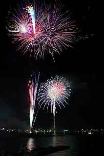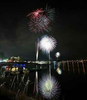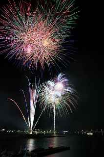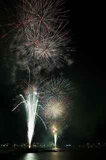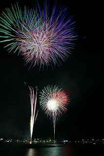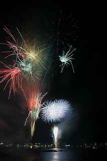 | 去る2月1日、船津浜駐車場から、畳岩、大池公園、八木崎公園の3カ所打ち花火を一つの画郭にまとめてカメラに収めようとして、そのタイミングの難しさに納得しかつ凹み、そして脱帽。 リベンジの気持ちが消える事もなく、何とか今年中に決着をつけたいと思い、出かけました。 21日、22日とも17時まで仕事、21日は予め軽ワゴンに機材を積んでおき、東名、東富士五湖道路と、高速代を使いまくって2時間ほどで河口湖船津Pへ。 19時30分到着では駐車場は満車状態で、仕方なく次のPへ。 道路もそうだが、人の出足は日曜日より土曜日のほうが圧倒的に多い。 最も、此処河口湖花火に関しては、22日の天気が雨予想だったせいもあり、今日がベターとばかりに、例のポイントにも3〜4人カメラマンがスタンバイしていました。 矢張り、研究熱心な殿方達と見えて、きっちり撮影ポイントは押さえ込まれてしまっていたのです。 この日の立ち位置を決める為、湖畔に立つと河口湖の湖面は驚くほど波がなく、対岸のホテルの明かりが異常にはっきりと湖面に映っているのです。 ベストポイントがゲットできなかった事もあり、三段ほどある石段の最下段を利用して、湖面反射を目論んでみようと考えを変えました。 狙い通りには行かなかったものの(画郭がちんまりしたことが失敗とは言え)、湖面反射の好きな自分にとって、田んぼや池でなく河口湖と言うデカイ湖で撮影できた事は、チョッと嬉しかった。 来年、河口湖冬花火に行く機会があって湖面が鏡になっていたら、是非きっちり撮りたいものだと思った。 そんな訳で、3カ所狙いをする筈が、すっかり目的変更になってしまい(明日の天気予報は南風が強く、前線通過時にやや強い雨、とあったので)今年は今日が撮り収めと思っていました。 これでは枚数も少しだし、写真としての出来も良くないので、近ちゃんギャラリーにアップするレベルに達していないので、止めるつもりでいたのです。 しかし、翌22日雨が若干早く止み、夕方4時ごろ太陽が顔を出し、日が差しているのを確認すると「しめた」とばかりに仕事が終わってすぐ機材をまとめる自分が居ました。 持参する選択レンズも昨日のままだし、5時半に出たとしても間に合うと思い出発。 けれども、矢張り西へ行けば行くほど厚く、黒い雲に覆われ始め雨も降り出し、須走からは結構な本降りとなってしまい期待薄。 チョッと後悔の念を感じながら、テンション下がり気味で籠坂峠を上っていると、あれほど強かった雨が不思議な事に富士吉田に入る頃には、霧雨となり、路面も半乾き程度。 ひょっとすると小雨程度で、このまま天気がもってくれれば、行ける=撮影可能かもと思ってしまいました。 船津の駐車場は、昨日とは打って変わって閑散としており、湖岸に近い場所へ車を止め、機材の運搬距離は2メートルほど、更にカメラは二台体制を諦め、縦位置一台で万一の大雨にもすぐ撤退できるようにしました。 この天気でわざわざ出かけるカメラマンは、この場所に関しては自分以外に誰もおらず、難なくベストポジションへ。 霧雨が止む事はなく、全くの逆風、レンズを拭き拭きしながらの撮影でしたので枚数は少しですが、三度目にしてようやく画郭一杯に3カ所から打ち上がる時間差花火を一まとめにして撮ることが出来ました。 22日は、湖面が北風のため波打っていましたし、湿気が多かったせいか、煙の滞留も目立ちました。 すべての要件がパーフェクトなことなど、ほぼ有り得ませんから、又「次」が発生するのです。 こうして又来年に課題を残し、今年の「河口湖湖上の舞冬花火」の撮影を終わります。 (追)明日は語呂合わせで富士山の日、2月23日です。 曜日に関係なく花火が打ちあがります。 流石に3日連続では行かれませんが・・・。 撮影日:2015−2−21,22 富士河口湖町船津浜駐車場遊覧船乗り場付近より |