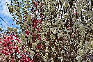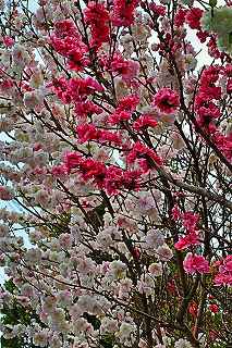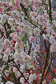 | 桜の開花と同じ時期に我が家の花桃も開花する。 毎年綺麗な花を咲かせてくれる4本の木だが、特に今年は白とピンクのまだらが混じった木が、花を沢山つけてくれた。 今年の桜は、開花してから気温が高かった事もあって、満開になるまでアッという間だった気もするし、満開になったら南風が強い日が多く、花散らしとなってしまった感が有る。 そういう年に限って、本業の出足が早く、春休みと重なって多忙となり、写真どころではなくなってしまった。 出かけられないもどかしさから、仕方なく自宅で撮影した花桃の登場となった。 差して珍しいものではないが、10年ほど前に長野県南部にある昼神温泉に出かけた時、そこで見た花桃の並木がとても美しく、気に入った。 それ以来、苗木や1メートルほどの若木を買って来ては、種類の違うものを植えていった。 しかし、4〜5本は枯らしてしまい、(海に近いので、南風が吹くと結構塩害までは行かないにしても、葉が枯れてしまったりする)残ったのは4本だけ。 自宅前を通りかかった人が、たまにスマホを翳しているのを見ると、いつもと立場が逆(撮影する人と、被写体を提供する人)なので、別な喜びを味わったりする。 花に、花を添える?ため、新5年になった、Mちゃんに参加してもらいました。 撮影日:2015−4−1 藤沢市辻堂の自宅にて |