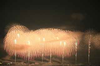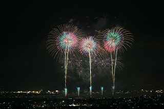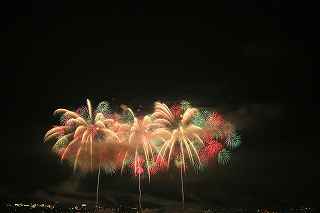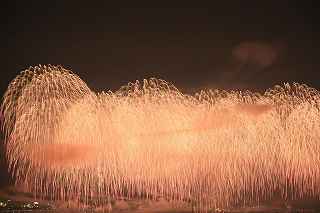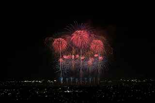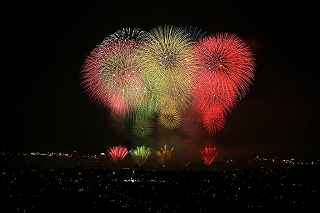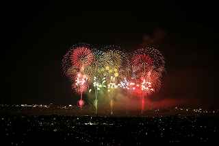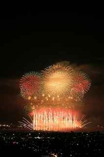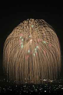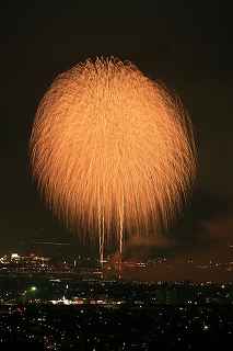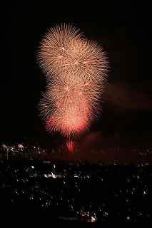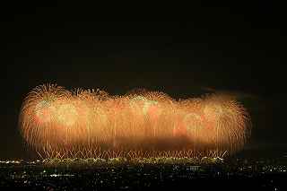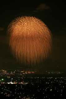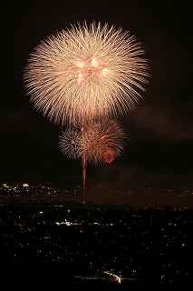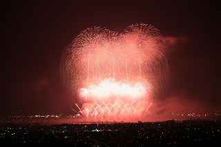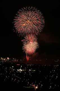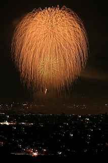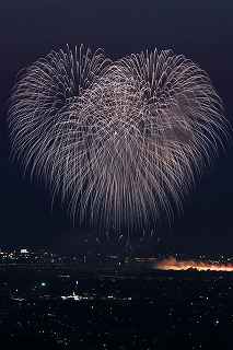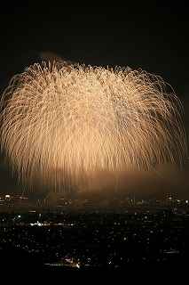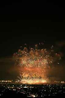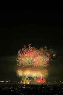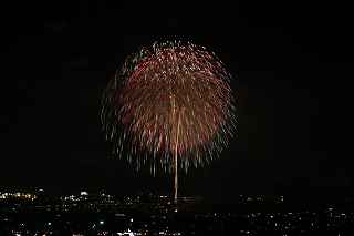| 毎年8月2日、3日、固定の長岡祭り花火は、今年日曜日と月曜日開催となった。 日曜日は56万人、月曜日でも48万人と、予め休みを取って出掛ける人が如何に多いかを物語る数字だ。 花火を撮る連中にしてみれば、出来れば月曜日に何とか参加したいに担当煙火業者になっていて、それはそのままプログラムを見れば、観覧者にもわかる内容なのです。 担当煙火店もそうですが、平原綾香さんのジュピターの歌唱にのせたフェニックスですら、3日の方はフルコーラスの5分、2日は3分で、実際に3分では大変物足りなさを感じました。 天候は、3日のほうが良かったみたいで、両日参加できた仲間は、一日目で今回からリニューアルした内容を学習し、二日目にバッチリ決めると言うスケジュールを組んで、この大会に臨んだことでしょう。 昨年自分は、カメラマン席を二人分も当てながら、その番号の差が2つしか違わないと言うアンラッキーに会った。 今年は、有料席には初めから応募せず、遠花火を目論んでいた。 昨年W氏が撮影した打ち上げ場所から5キロほど離れた東山スキー場から、彼がもう一度リベンジすると言うので彼の車に乗せて行って貰った。 35度を越える猛暑日が、ついに記録を塗り替える連続5日と成ったこの日、関越道の谷川岳付近から、関越トンネルに入るまで雨がパラパラ来たものの、降雨の心配は殆ど不必要だった。 渋滞を予想して、9時半出発、圏央道相模原先から、中央道分岐までやや渋滞していたが、それを越えると嘘のように空いた。 しかし花園インター辺りから100台は有に越える暴走族の集団と並走する羽目になり40キロ程度のスピードしか出せず、到着は13時半頃だった。 標高がどれくらいなのかは知りませんが、渡ってくる風は高原のそれに近く、木陰に入れば暑さは殆ど感じず、気持ちがいいので、ついウトウトしてしまいます。 大げさではなく、此処に横になっていると、此処が長岡で、自分は花火の撮影に来ているんだと言う自覚を全く失ってしまいそうです。 場所取り不要、暑さ対策要らず、ただ時間が来たら、撮影の準備を始めるだけ。 W氏と尽きる事ない花火談議をしていれば、時間はかなり早く過ぎてゆく。 ただ、この日はW氏が望遠鏡で長生橋を捜すも、かなり霞んでいて発見できず。 夕方になり再度試みた結果、皮肉にも望遠レンズで捉えたそれらしき方向を拡大する事で、ようやく位置が確認できた。 此処から打ち上げ場所までは、5キロから6キロはあると言う事が半分ほど実感できた。 今日のように霞んでいて、風も弱い気象条件ではチョッと不利。 それでも、カメラマンが30人ほど集まって来ていて、またまた、名古屋の長尾氏とばったり出会った。 4月の伊勢原の山の上、逗子海岸と京浜逗子駅の途中の道、そして此処、と三回目の遇然。 56万人の中で、彼を捜したって見つかる訳ないのに、なぜか自分が撮影しようとするところに彼は現れるのだ。 それなりの遠花火だが、フェニックスの全長を収めるとなると、このくらい離れていてもそれなりの意味はある。 夜景や天体そしてイルミを主なジャンルにしている彼にとって、おそらく自分と考える事にラップする部分が多く存在するのだろう。 遠花火ゆえ、FMラジオは欠かせない。 これがないと、時計との睨めっこ、及びプログラムをちらちら見ることになる。 W氏からは、多少のアドバイスは戴いていたが、いざ花火が打ちあがってみると、矢張り頭の中のイメージとはだいぶ異なっていた。 当たり前だけれどやっぱり遠い。 どれだけ遠いか言葉ではいえませんが、「どっかで花火大会やってるよ。」と言った会話が聞こえそう。 カメラマン全員が、100ミリ〜400ミリクラスの望遠で臨み、その眺めはチョッと圧巻。 頭の中では、ビビルことなくなるべく被写体に寄るよう心掛ける気ではいたが、いざ撮影結果を見ると、寄せ切れていない。 下部の町の明かりも、思い切りが足りず、上部との空とのバランスは最低。 学校のレポート提出で、先生から「やり直し」と言われた感じで、又来年のリベンジを余儀なくされた。 来年は、火曜、水曜開催だ。 あの場所なら、有料席をゲットした時と同じ16時でも十分余裕で場所取り可能、2日か3日のどちらかに都合をつけて行く事にする。 構成は、動画「この空の花」と写真集です。 撮影日:2015−8−2 新潟県長岡市栖吉町 東山ファミリーランドにて |
