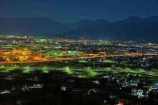 | 本来、夜景撮影をする場合、夕日が沈み、空がブルーになるトワイライトタイムから始めないと、作品としての完成度は低い。 しかし、仕事が17時に終わるわけではないし、日曜日にそれらしき時間に撮影に出かけて、必ずしも、天候に恵まれるわけでもない。 仕方なく、23時頃からの深夜撮影行動となる。 しかも近場。 今回も自宅から30分ほどのお手軽スポット。 西湘バイパス国府津インターから県道72号線=松田国府津線を北上、小田原厚木道路のガードを潜って、直ぐ先の交差点、「田島石橋」を右折、坂を上る途中から国府津や小田原の夜景が見え始める。 大きなヘアピン右カーブを上って少し走った所で8時方向に左折、直ぐ左手から見事な夜景が広がる。 この道は地元の、ミカン農家などが主に使っている道のようで、車の通りがそれ程頻繁ではないようだ。 駐車禁止のマークもなかったのか気が付かなかったのか、とりあえずは、車内観賞が出来るので、運転席に座っていればOK。 もっとも、撮影となると車の止め場所に困るのと、路肩での撮影は少し危険だし、止まっている車にポイントをふさがれたり、止めようとする車にも気を配る必要がある。 仕方なく、右手のミカン畑に繋がる作業用の袋小路に乗り上げて車を止めさせて頂き、失敬した。 平日でもお立ち寄りの車はそれなりに数台はいて、余り知られていないのではと思いつつ、ネット社会の情報を感じてしまう。 一言で言ってしまえば、ここの夜景は「動きがふんだんに盛り込まれた夜景」といえよう。 先ず直ぐに目に飛び込んでくるのが、正面の小田原厚木道路。 弁天山トンネルを抜けたそれは、御殿場線と交差して、右手小田原方面へと遠ざかってゆく。 オレンジの光が一際目立つ。 残念ながら、御殿場線の本数は少なく、なかなかキャッチできないが、その横にある国府津の電車区へは23時半ごろから続々と回送電車が入ってくる。 ポイントをいくつか切り替えて入庫してくる湘南電車は、走っては止まり又徐行で動き出すので、断続的にチョッパの作動する音まで聞こえる。 15両編成のE233系の横を4両編成の御殿場線が松田、山北方面に向かってすり抜けて行く。 ロングレールでない部分があるようで、昔の「ガタンゴトン」の音が寒々とした真冬の空に響く。 やがて電車は、下曽我駅に近づくとスピードを緩め、音の間隔が広がり停車。 ここの夜景は音まで観賞できる。 もっとも、車内観賞ならそんな音よりささやき声のほうがいいかもね? グーグルマップならヒットするかもしれませんが、田島地区を抜け、梅林で有名な曽我に入ると曽我別所と言う地名になります。 右手に見晴台と言うポイントがあり、ここからの眺めは、さらに高さが有る分、素晴しいです。 小さな案内板がありますが、夜間は殆ど役に立ちません。 しかも、いきなりの急坂なので、気合を入れて上らないと成りません。 農作業の車は殆どが軽トラックなので、軽自動車のほうがここへの進入は楽です。 自分も、イケイケドンドンで登って行、道に迷い行き止まり、真っ暗な道をバックで降りるのにチョッと真剣に成りました。 アクセスが厳しい分、殆どここまで登ってくる車はないようです。 見晴台にはベンチと木製のテーブル、簡易トイレがあり、広さは5メートル四方ほどの休憩所で、その狭さには苦笑してしまいます。 夜景も勿論ですが、誰もいないのが最高の贅沢。 梅の花とのコラボまで出来て、迷路のような道で冷や汗をかいた代償には十分な場所。 高度を稼いだ分、小田厚道路の向こう側に、一瞬だけですが新幹線も見えるし、右手奥には東名高速大井松田方面のオレンジのナトリューム灯もカーブを描いて続きます。 これだけの動きのある夜景をこれまでに見たことはなく、昼間なら曽我の梅林も見えるそうです。 最後になりますが、言うまでもなく富士山もバッチリです。 撮影日:2016−2−18 曽我別所・見晴台及びその手前にて |