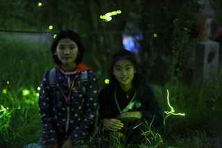 | 13.蛍の光に顔が照らされていました | 14.人が少ない所=ほたるが少ない所が撮影場所 |