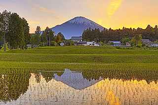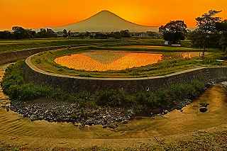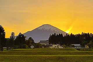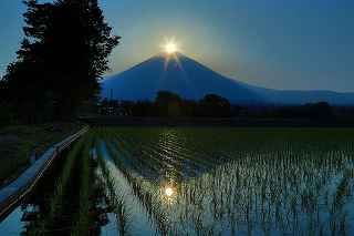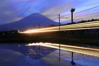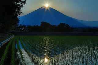 | 5月4日5日は、先の御柱祭でお世話になった、Fさんから「泊りがけでどうぞ」とのお誘いを受けていた。 当初、里引き≪4日≫と建御柱≪5日≫の両方を見学するつもりでいたが、どうも4日の天気予報が強風の上午前中雨というので、急遽5日のみとした。 ところが実際には、湘南地方ではかなり風が強かったものの、雨量は大したことなく、後日聞いた所によると諏訪は天気もよく風も強くなかったと言われた。 4日の夜、支度をしリュックを玄関まで出したところで野暮用が入った。 大体、出鼻をくじかれると、こういう結果が待っているという典型のようなもの。 先様には大変なご迷惑をお掛けしてしまった。 翌日のニュースを見ていると、本宮一の御柱の天辺からから、およそ15メートル落下し命を落とされた方がいらっしゃると言う事故を聞き、大変なショックを受けた。 もし現場に居合わせたとしたら、そう思うと、もし行ったとしてもとても近ちゃんギャラリーに掲載する気にはならなかっただろう。 その方は、夕方には一時的にしろ、意識を回復されたものの、その日の夜遅く亡くなってしまったと聞くと、居た堪れない気持ちです。 謹んでご冥福をお祈りいたします。 5月5日撮影記 野暮用は昼過ぎには終わり、夕方のダイヤモンド富士には間に合いそうだったので、いつものコースを御殿場まで走る。 ゴールデンウイーク中では有ったが、翌日6日金曜日は仕事と言う方が多いのだろうか?箱根湯元を先頭に「大平台」のヘアピンまで大渋滞だった。 反面、御殿場方面へは「宮ノ下」まで全く前にも後ろにも車が一台も確認できず、大渋滞を横目にスイスイ上がっていった。 変な意味で、日本人の行動パターンの均一性を感じてしまった。 この日のポイントは、R138、仁杉交差点右折「柴怒田(しばんた)」地区。 多少段差になった水田が広がる結構いい場所だが、画郭の中に国道を走る車が入ってしまう程138に近い。 天気は申し分ないと思ったのだが、残念ながら自分の撮った写真は、ダイヤ姫の輪郭がはっきりせず。 腕の悪さを露呈した。 5月22日撮影記 15日の天気は下り坂の天気で、雲が多くダイヤモンド富士は期待できなかった。 この日はお気に入りの「パレット御殿場」南側からの撮影だったが、西の方に限って厚い雲に覆われ、太陽は全く姿を見せなかった。 それでもパレット御殿場付近から御殿場線を撮影して、田植えの風景を残しておきたかった。 本数の少ない御殿場線は、通過を待っていると、いつの間にか8時ごろまで付き合うこととなり、それでもそれなりの収穫はなくはなかった。 22日は、このところ続く晴天と25度前後の気温で富士山も霞勝ち。 ただ、大体こういう時は夕方近くになると見えることが多く、3時半出発。 R138、東名のガードを潜って3つ目あたりの交差点「鮎沢」を右折。 公民館を過ぎ「ヨシケイ」があるあたりが目指すエリア。 ただ今回は場所が少しばかり曖昧で、ど真ん中に姫を落とすことが出来ず、まだまだこの地区を調べ上げていない弱点を露呈した感がある。 しかし、今度はそれなりにしっかりした姫の姿を捉える事ができ、70点ほどの出来としましょう。 夕方になると、田んぼの水加減や、水路のごみの除去で回ってくる農家の方との会話も楽しく、ついつい姫が沈んだ後まで、かえるの鳴く声を聞いてしまう。 そして、そんな畦道をぶらついていると、又新たにいい場所をも発見する事になる。 撮影地点は田んぼの畦道だったり、人家のない道路端だったりで、住所表示は省かせて頂きます。 撮影日:2016−5−22 仁杉交差点右折「柴怒田(しばんた)」地区にて |