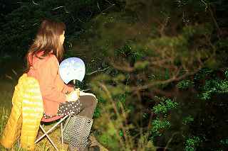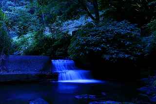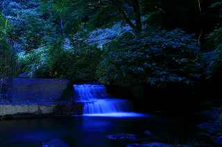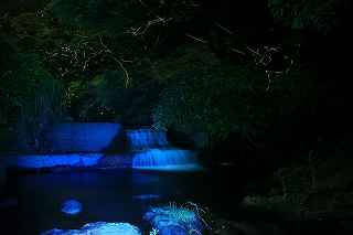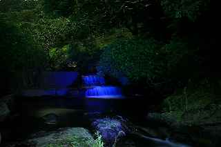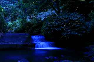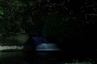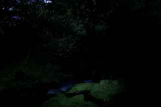 | 今回、伊豆キャンプフィールドへは足を踏み入れませんでした。 理由は、18時30分までの入場に間に合わなかった為。 やむを得ず、下流にある河原からの撮影となりました。 ご承知のように源氏ホタル撮影は、飛翔が大体19時半過ぎ頃からなので、設定に細心の注意が必要な事は姫ホタルと同様ですが、撮影に入ってからも刻々と変化する明るさによって、露出時間を変更するか、ISO感度を変えるか、絞りで調節する事も考えられます。 大体20時頃から、せいぜい1時間が勝負ですが、20時頃でも微妙に明るさが変化していますし、長めの露光をし、出来るだけ沢山の蛍の光跡を入れようとする狭間の中での撮影は、油断できません。 最近は、なるべく周囲の景色にも気を配り、頭数よりも背景重視で、その場所の雰囲気が微かでも分かるような作品作りを心がけています。 そんな実力以上のことをやっていると、ホタルだけ写っていて満足していた時よりも、かえって失敗が多くなり、10分、15分、まったく無駄な露光をして昼間の写真になっていたり、ピンボケ写真も多くなってしまったり。 よって、全くと言っていいほど、枚数は捗りません。 6月12日に出かけた時には、曇天で暗くなるのが早く、いつもより10分ほど早く光り始め、20時頃にはかなりの乱舞となりました。 しかし、20時半前になって雨がポツポツ降り出し、初めのうちは頑張って飛んでてくれたホタルさんも、やがて葉の下に止まったまま、ぼんやりとした光を放つだけになってしまいました。 その後結構大粒の雨となり、頭上の木々からもポタポタ落ちてきてしまったので、潔く撤退。 よって、撮影枚数僅かで、21時過ぎには伊豆スカイラインに入り、山伏峠まで利用、県道80号で下多賀へ向かいました。 撮影日:2016−6−12 静岡県伊豆市徳永冷川にて |